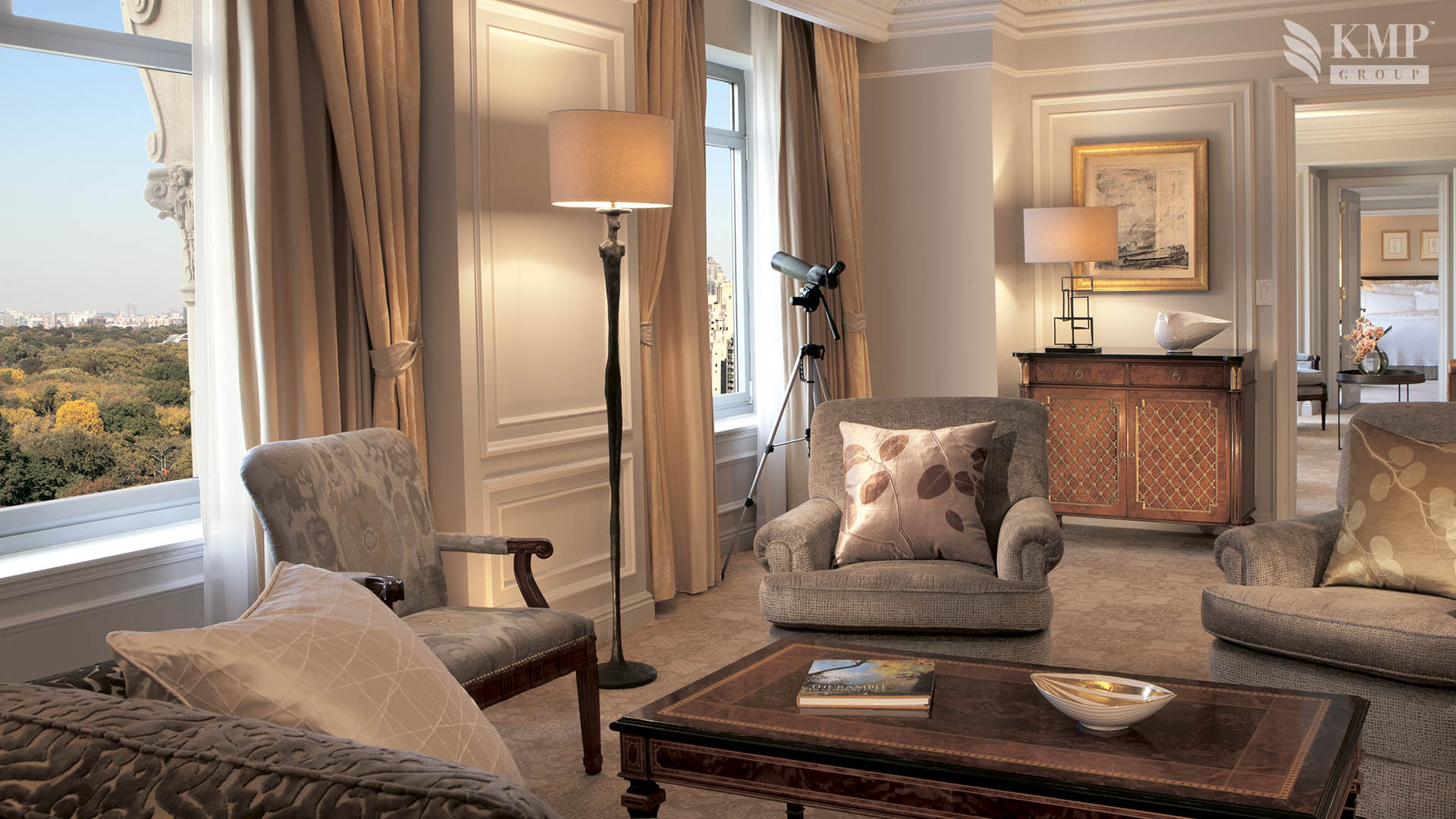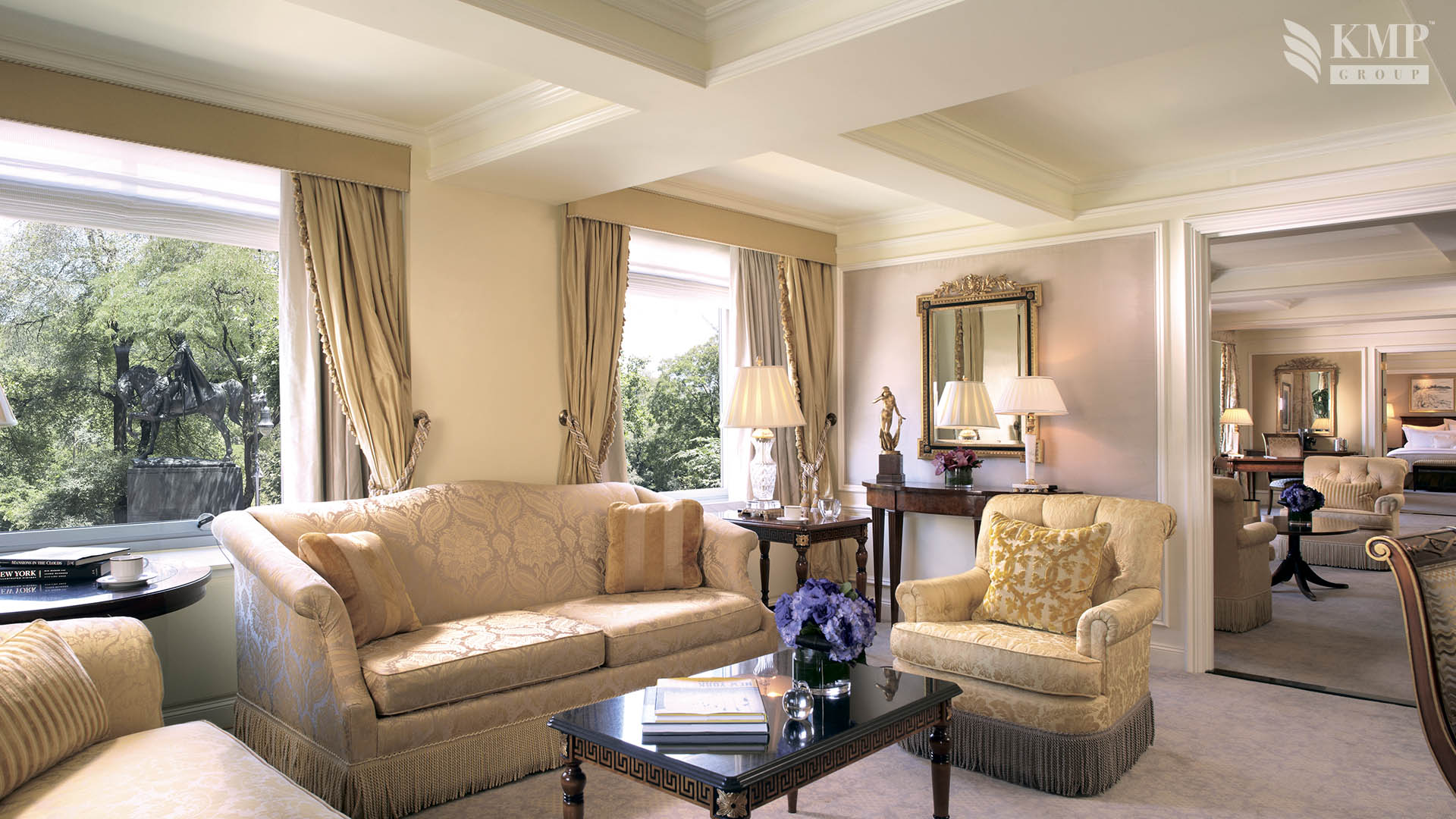 Central park suite (176 кв. м): прихожая, 2 гостиные, столовая с обеденным столом на 8 персон, кладовая, спальня, ванная комната с ванной и душевой кабиной, гостевой туалет. Расположен на 3 этаже. Вид на Центральный парк. Возможно присоединение дополнительной спальни и ванной комнаты.