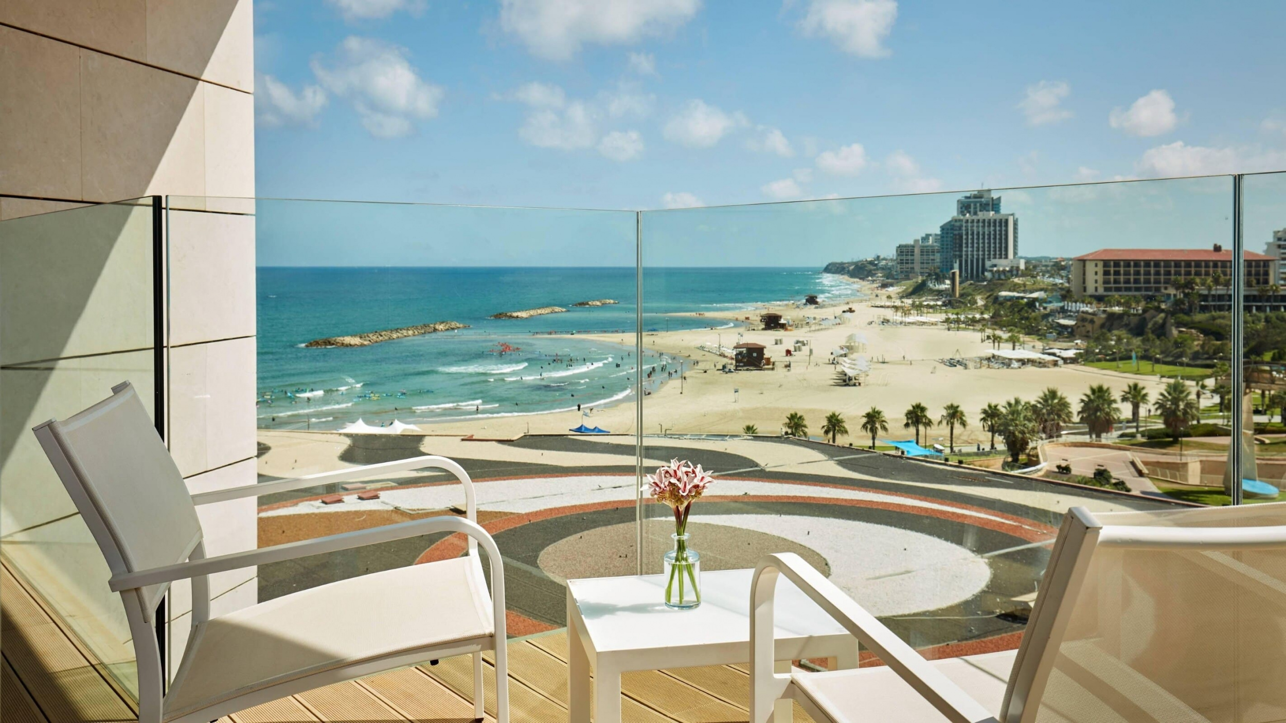 Deluxe room sea view (60 кв. м): балкон, спальня, ванная комната. Вид на море.