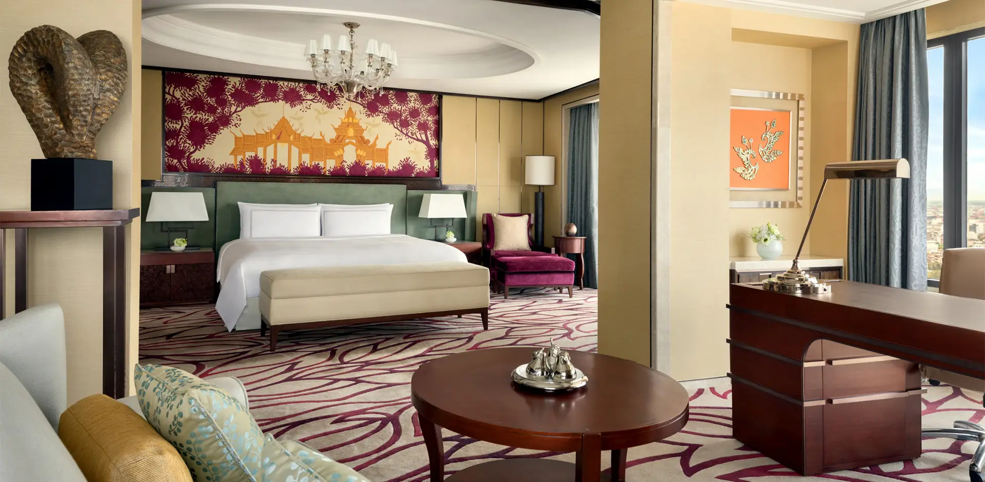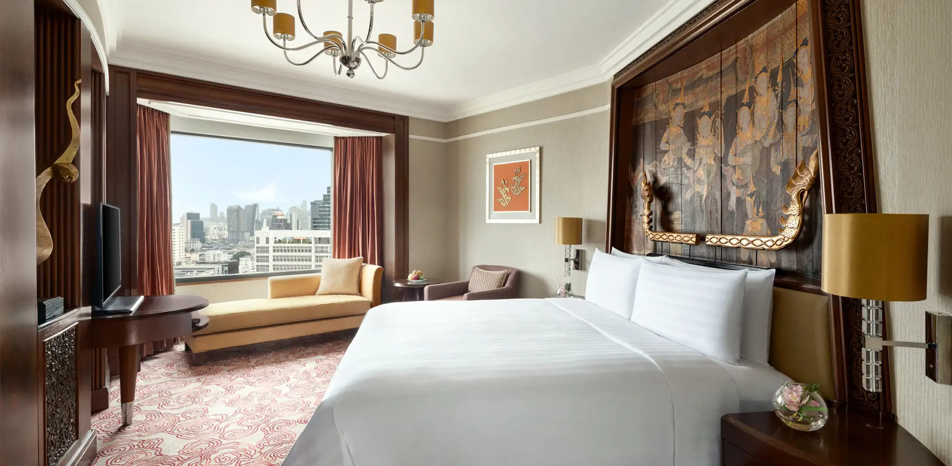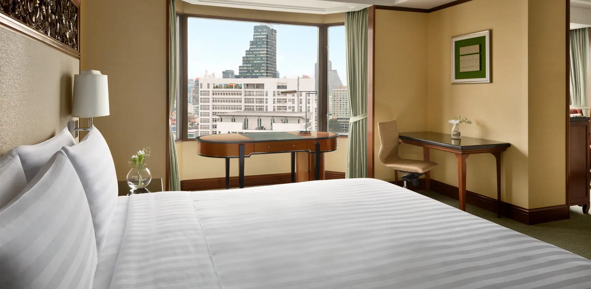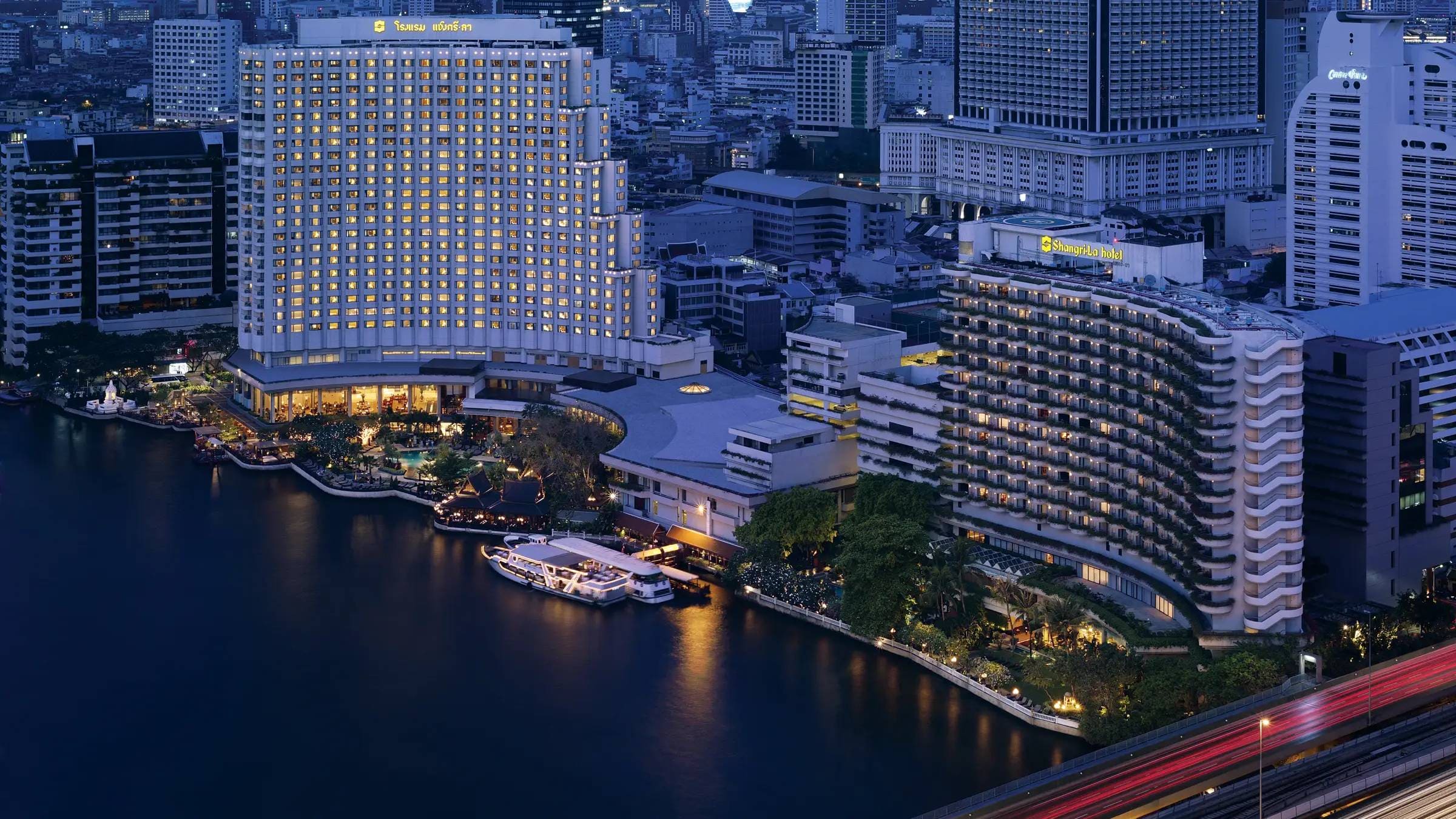 Отель Shangri-La Bangkok находится в квартале Силом, возле станции надземного метро Saphan Taksin. Поездка до международного аэропорта Суварнабхуми занимает около 40 минут.