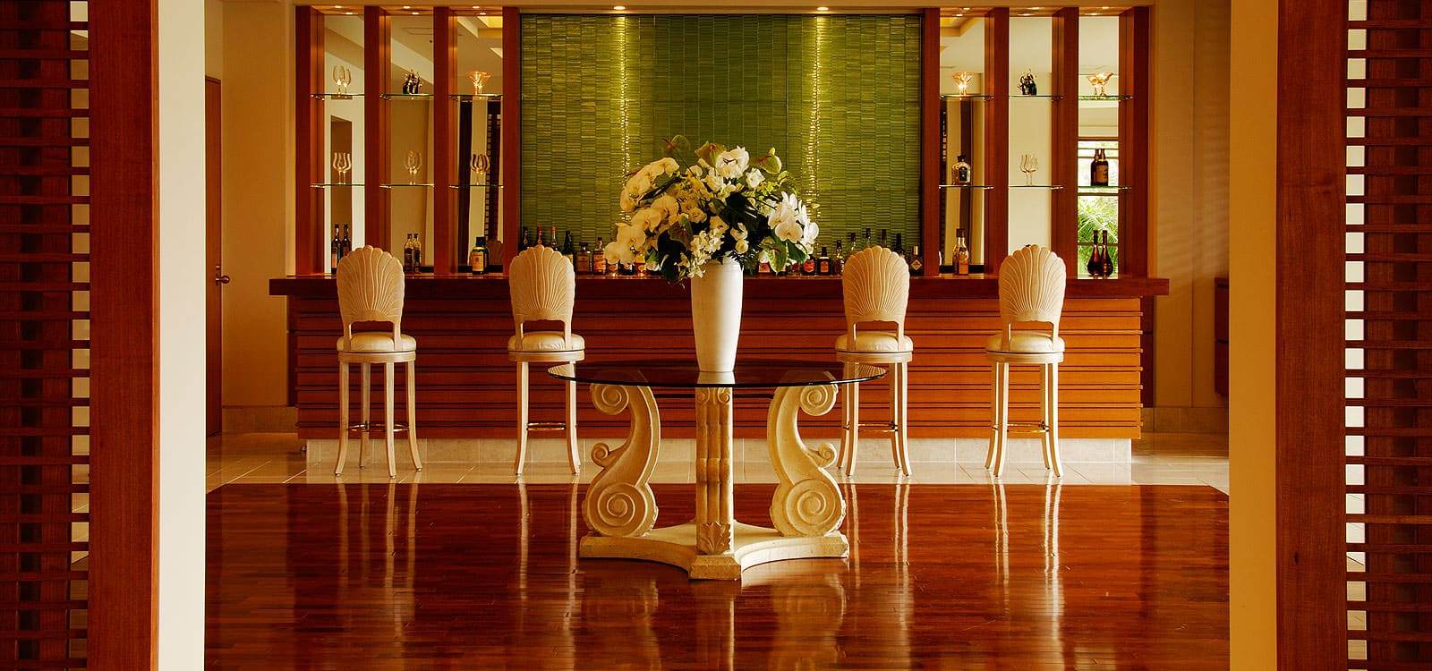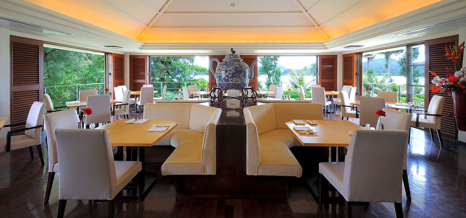 Presidential suite (123 кв. м): 2 террасы, гостиная с обеденной зоной и баром, спальня с двумя отдельными кроватями, гардеробная зона, ванная комната с ванной и душевой кабиной. Номер занимает отдельную виллу. Вид на закат. Гости данного номера имеют особые привилегии.