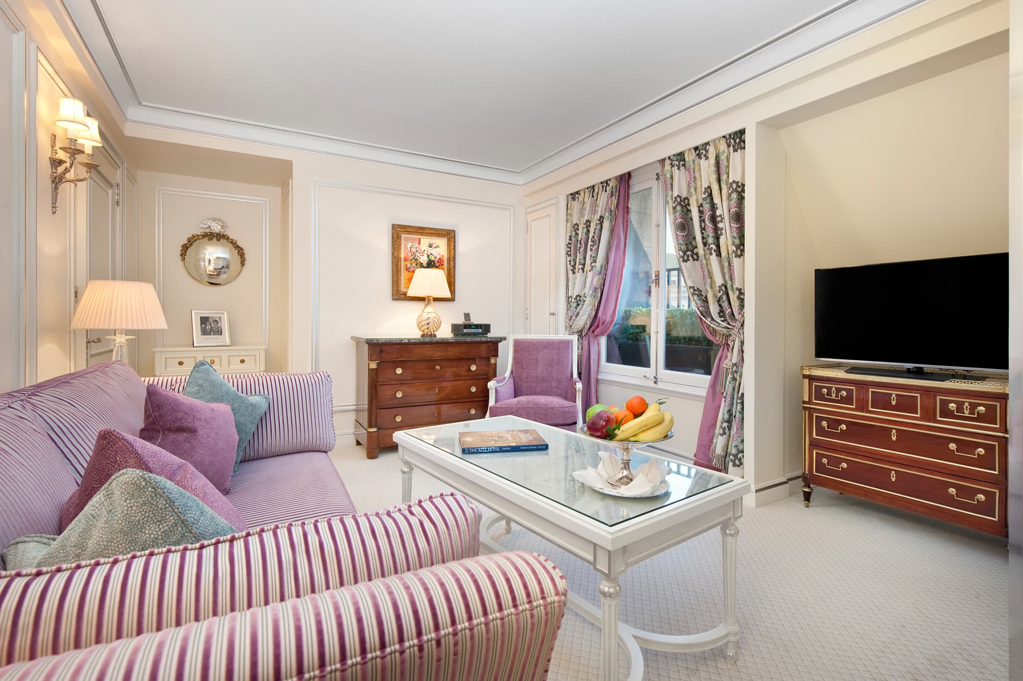 The Trafalgar Suite (80 кв. м). Гостиная, спальня, ванная комната. Вид на улицу Пикадилли и Грин-Парк.