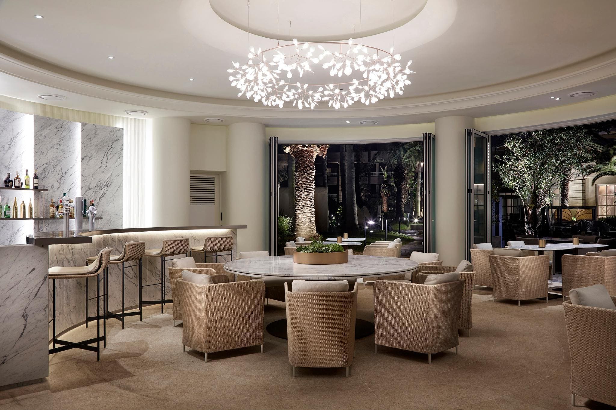 Presidential suite (264-277 кв. м). Терраса с обеденной зоной на открытом воздухе, гостиная, столовая, кухня, кабинет, 2 спальни, гардеробная, 2 ванные комнаты. Дополнительно: вентилятор, камин. Вид на море, горы или сады. Расположены на 7 и 8 этаже.