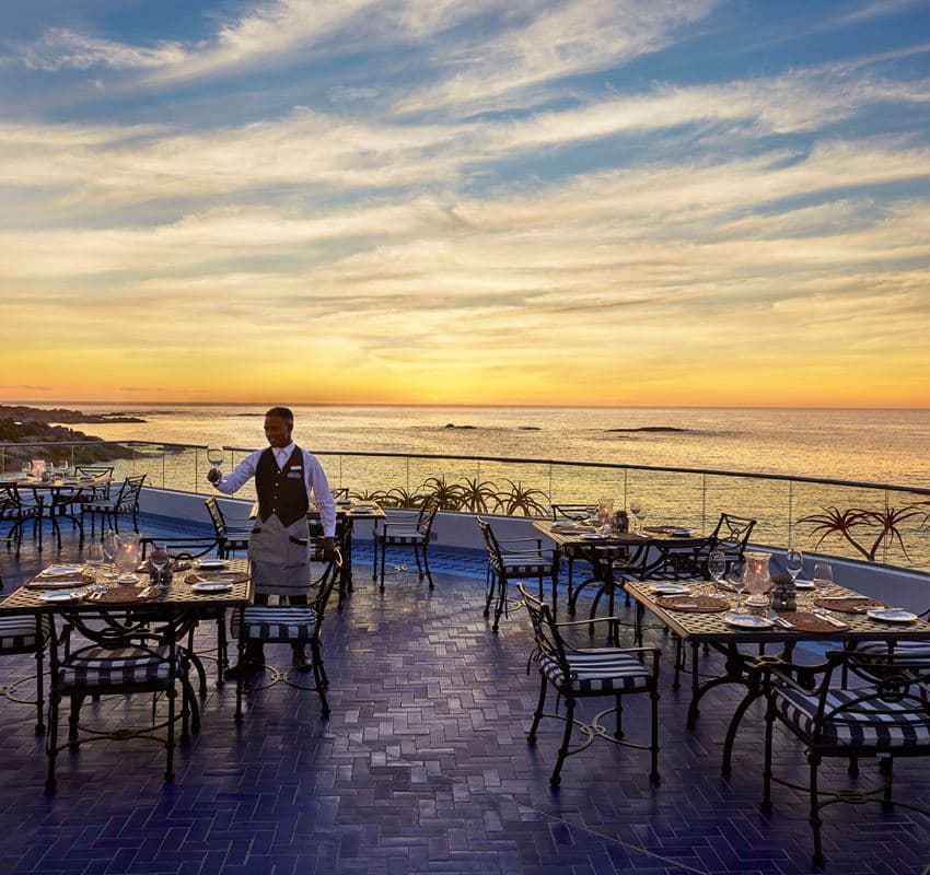 Путешествие на край света, туда, где встречаются Атлантический и Индийский океаны, начинается в белоснежном отеле, названном в честь гор, у подножья которых он расположен. С балконов открывается поистине потрясающая панорама океанского побережья. На террасах ресторана, откуда частенько можно понаблюдать за игрой дельфинов в морских волнах, гости наслаждаются деликатесами международной и южноафриканской кухни.