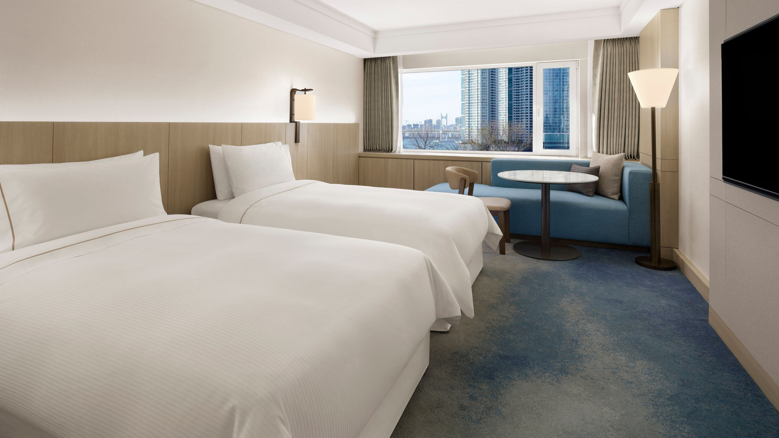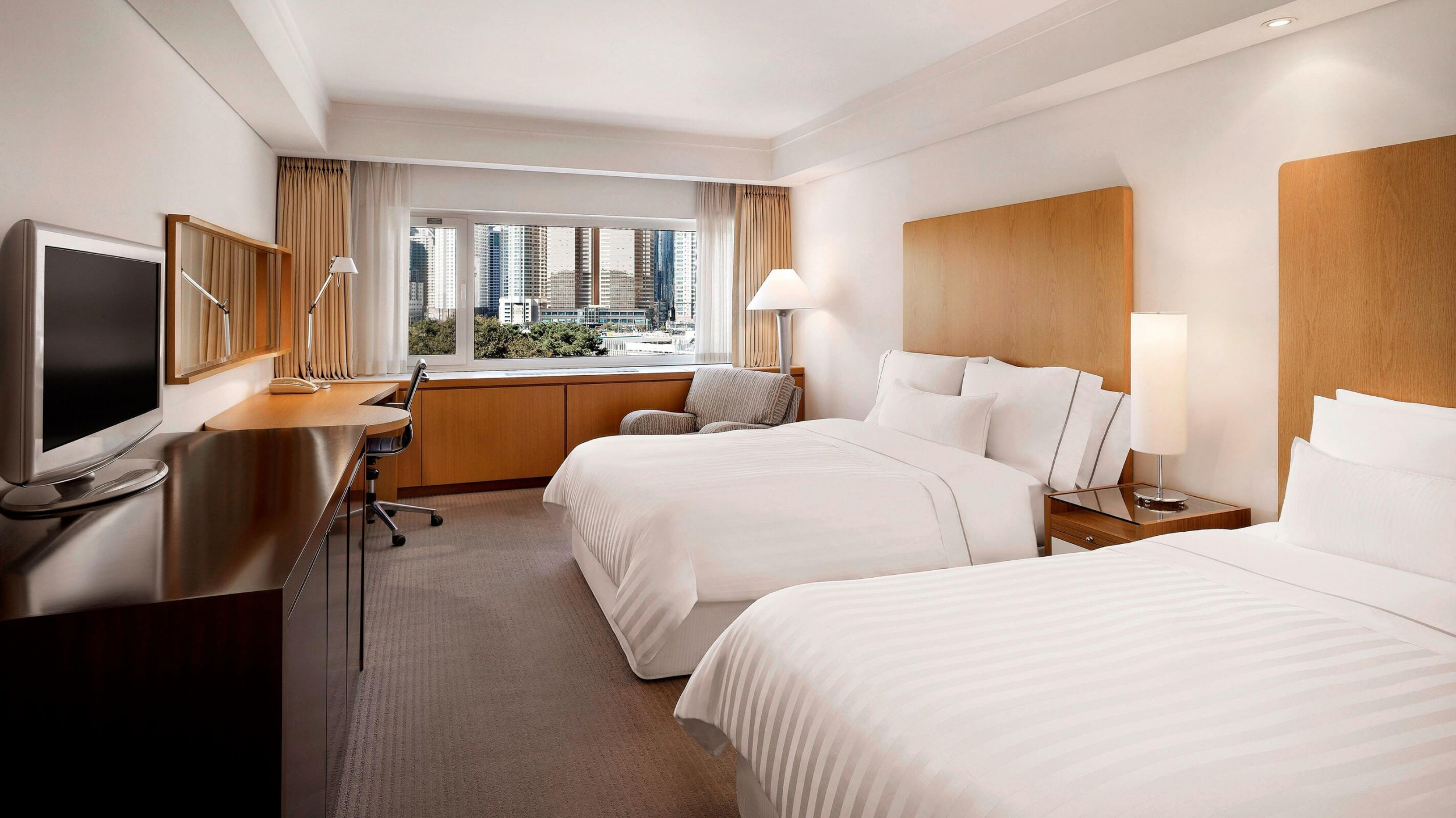 Deluxe room park view (29-30 кв. м). Спальня с кроватью queen-size или двуспальной и отдельной кроватью, ванная комната. Дополнительно: кофемашина Nespresso. Вид на парк.