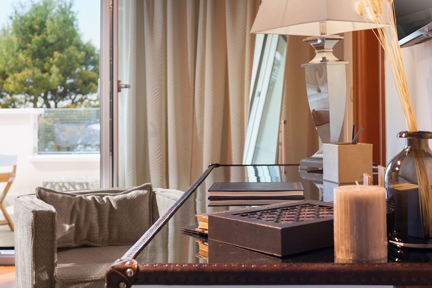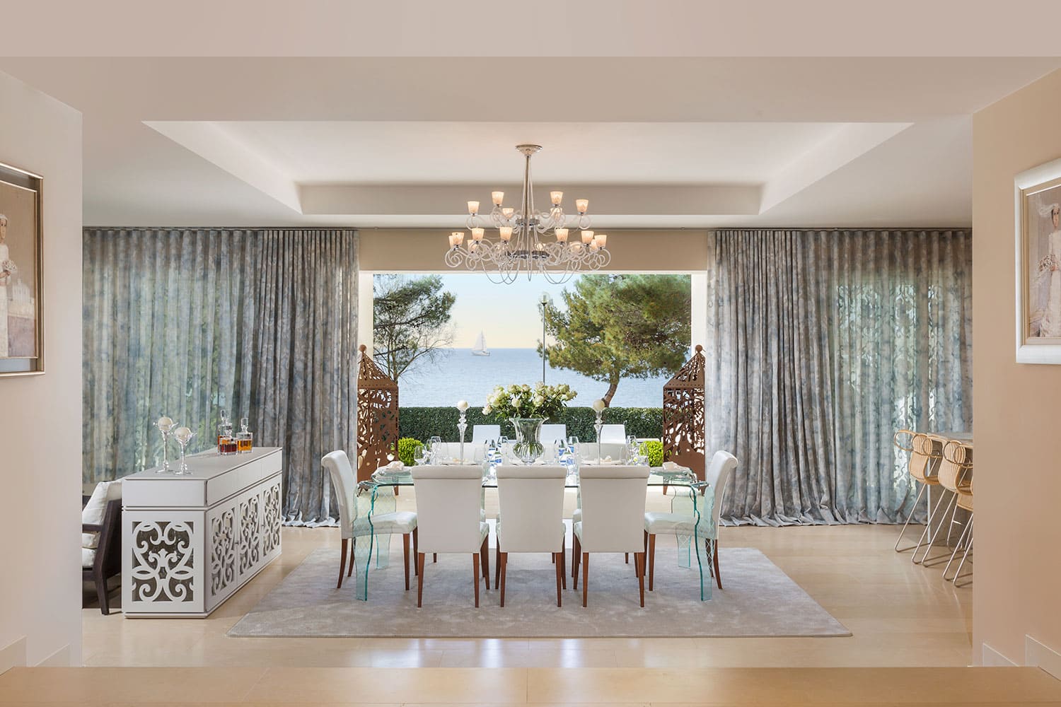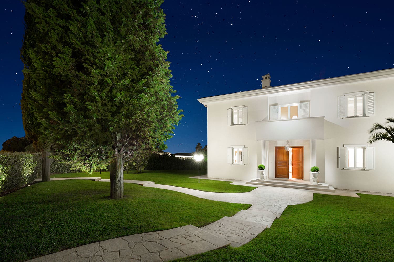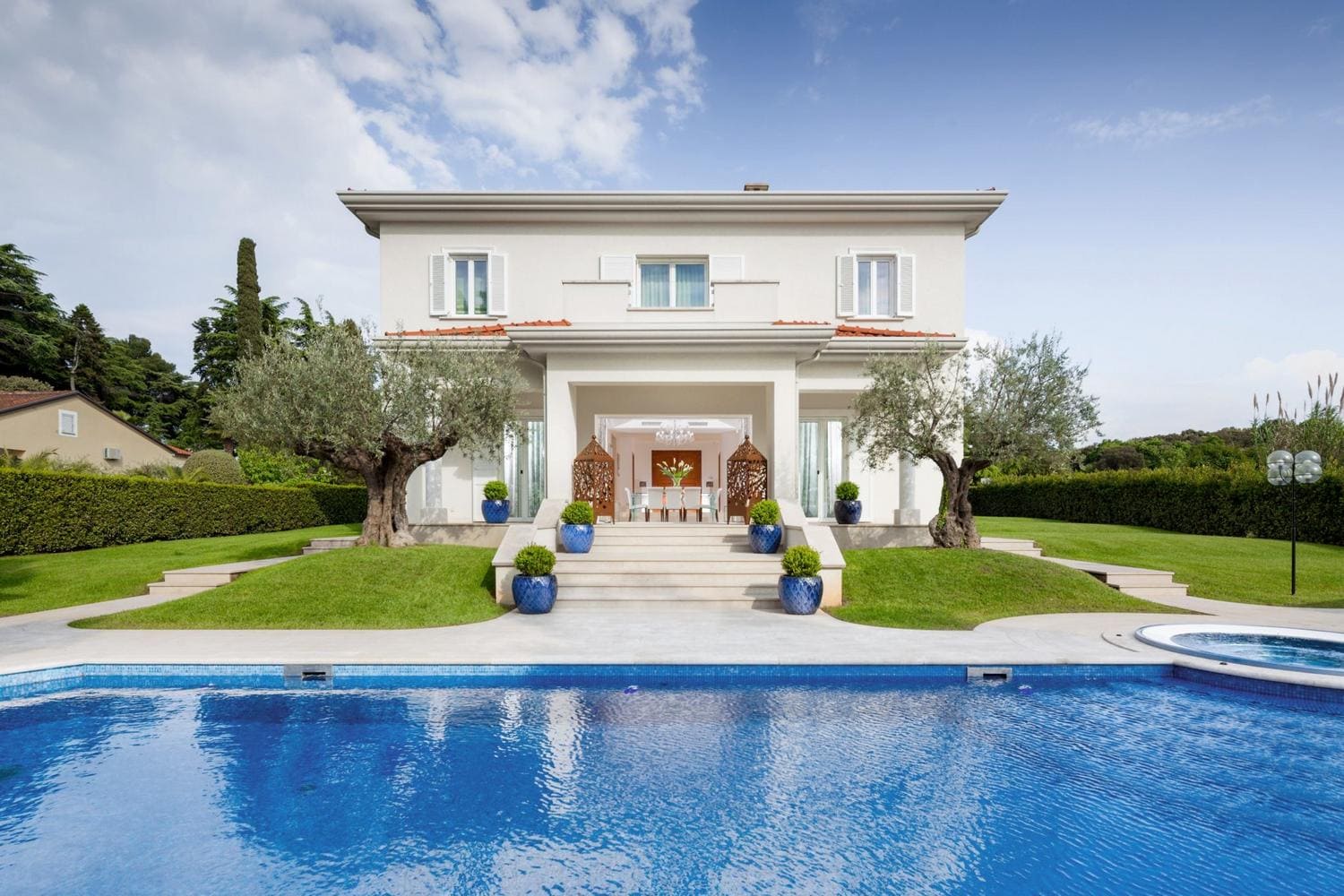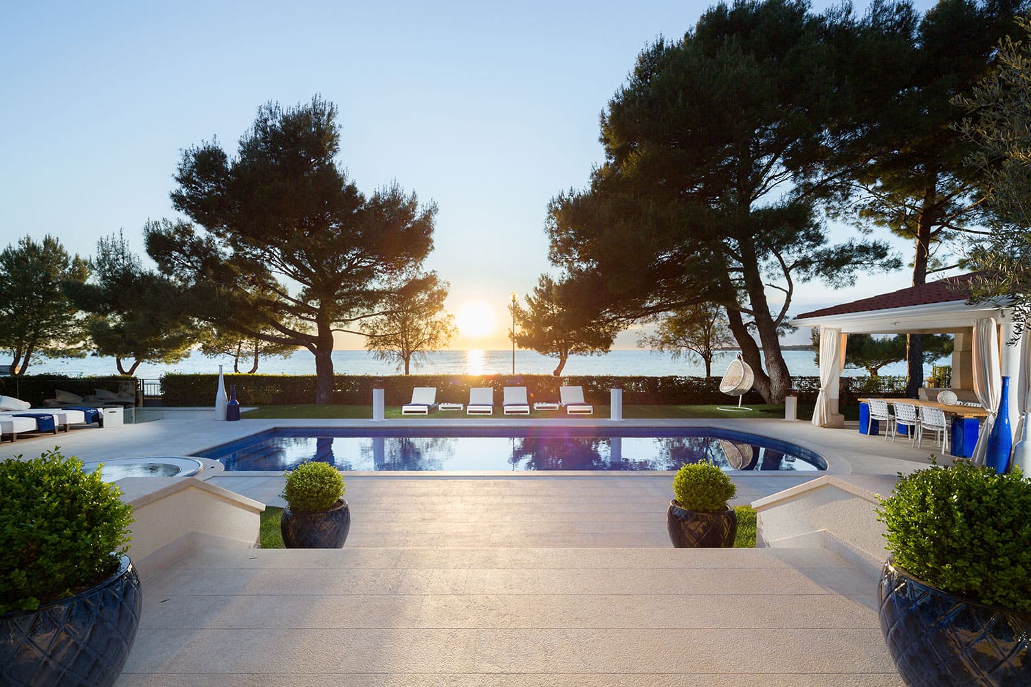 Роскошная вилла Helena окружена садом с ухоженными газонами и средиземноморскими растениями. В части сада с видом на море находится бассейн с джакузи, шезлонгами и зонтиками. Из сада открывается очаровательный вид на Адриатическое море и красивые закаты. Из сада несколько ступенек ведут к крытой веранде перед домом с летней кухней с барбекю и обеденным столом на открытом воздухе.