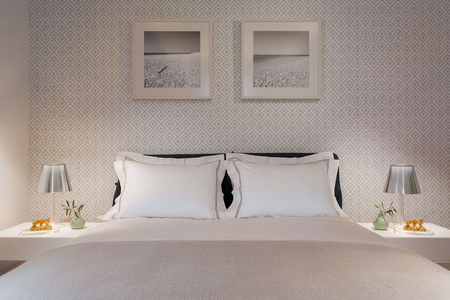 Лестница ведет с первого этажа на второй этаж, где расположены четыре спальни. Одна из них - это главная спальня с кроватью размера «king-size» и ванной комнатой с ванной и душем и выходом на собственную террасу. В остальных трех спальнях также есть двуспальные кровати, а в двух из них также есть ванная комната с душем.
