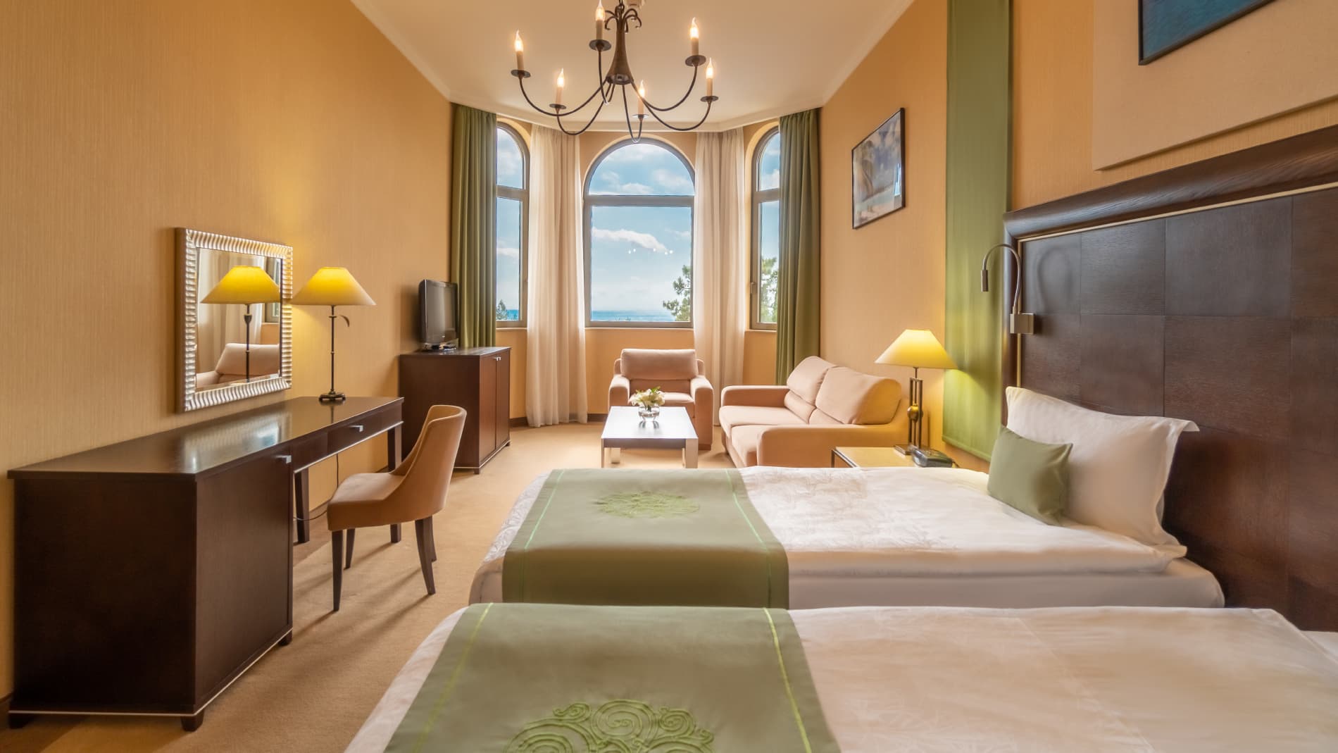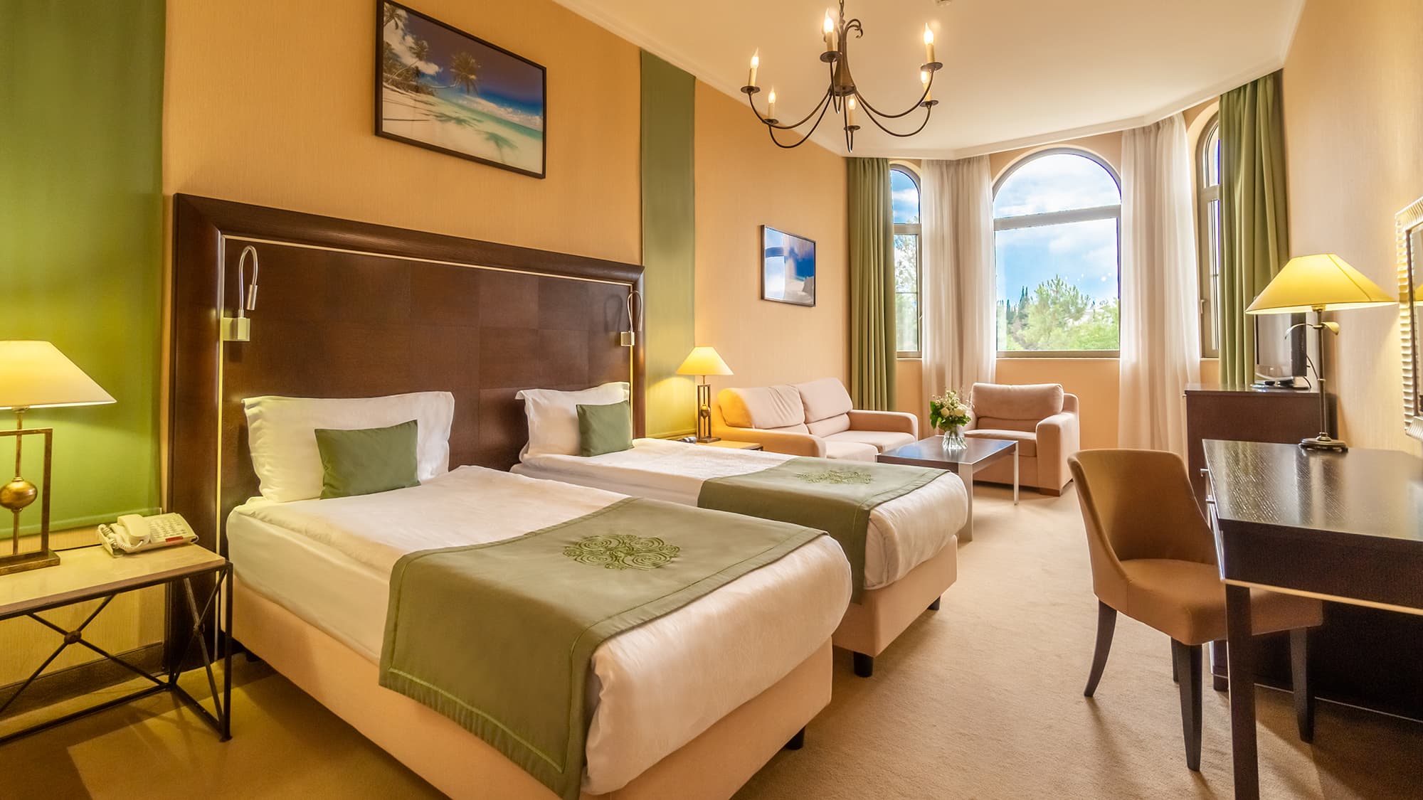 42 номера, 3 коттеджа, 4 виллы, 3 ресторана, 4 бара, частный галечный пляж (в 250 м от отеля, спуск по лестнице или на лифте), открытые бассейны (в том числе один - только для гостей вилл), открытые детские бассейны, закрытый бассейн для занятий аквааэробикой, SPA-центр, медицинский центр (в санатории «Заполярье»), 2 тренажерных зала, спорт и водный спорт, детский центр, клуб для подростков, бизнес-центр, парковка.