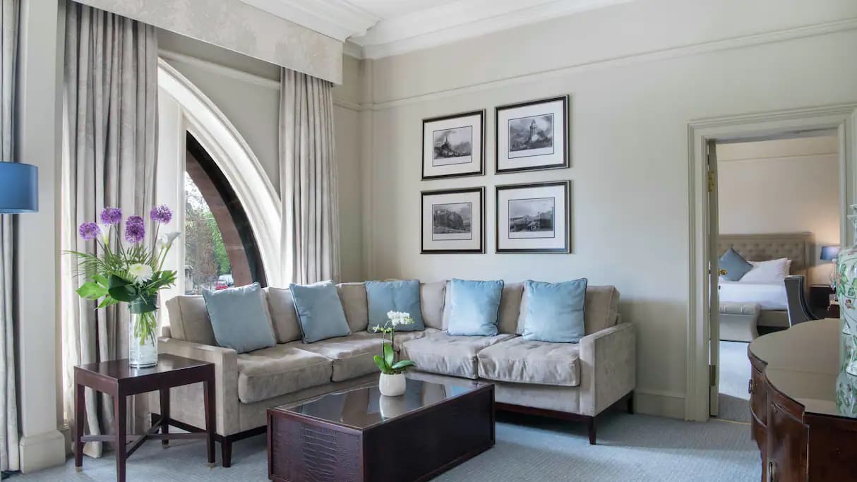 Billy Garioch Suite With Castle View (60 кв. м). Гостиная, спальня с кроватью queen-size, ванная комната. Вид на Эдинбургский замок. Гости данных номеров имеют особые привилегии.