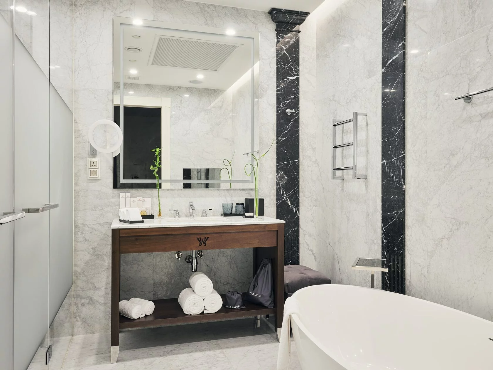 Отель Wawelberg Hotel St. Petersburg чтит историческое прошлое, используя в интерьерах герб банкирского дома и предлагая разместиться в роскошном четырёхкомнатном люксе, расположенном в той части здания, где находились апартаменты самих Вавельбергов. Изысканный резной камин, массивные деревянные двери и многоярусные люстры, изящные драпировки тканей и утончённый аристократичный дизайн – в этом номере легко окунуться в атмосферу ушедшей эпохи. Люксы с террасой на 6 этаже порадуют потрясающими панорамными видами на исторический центр Петербурга, романтичные крыши или шпиль Адмиралтейства, и абсолютно каждый номер – идеальным балансом элегантного современного дизайна и деталей, необходимых взыскательным путешественникам.