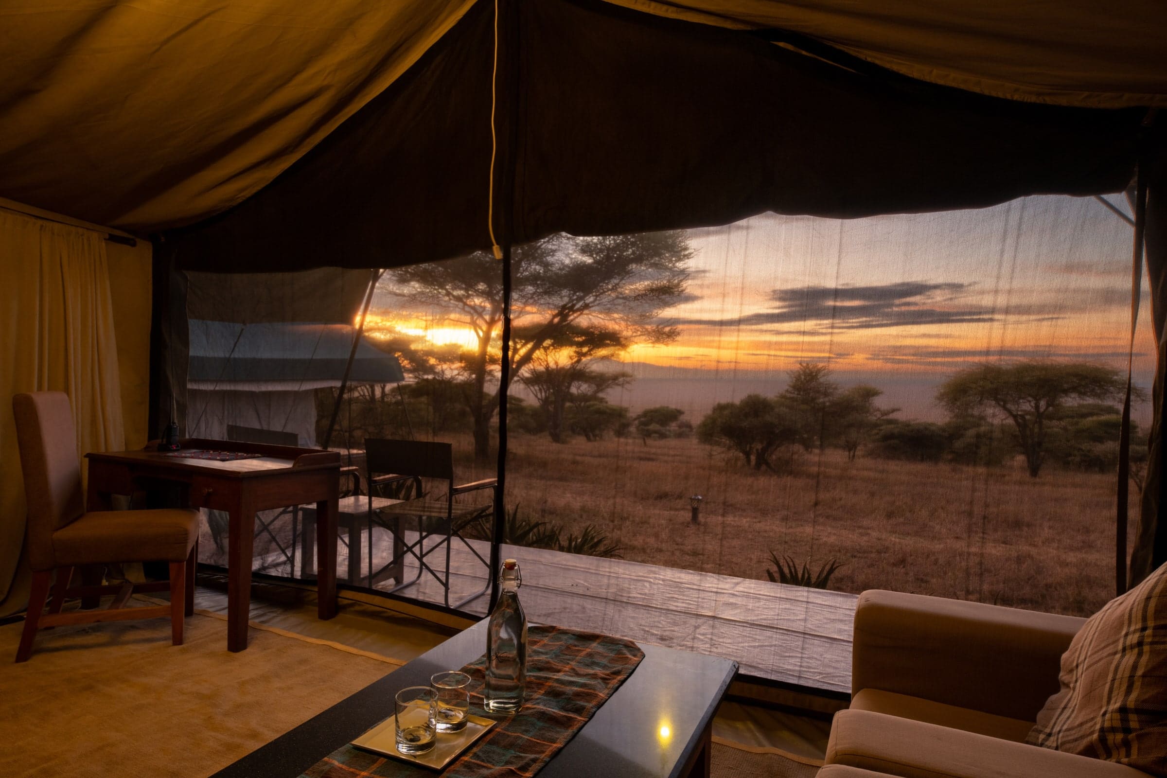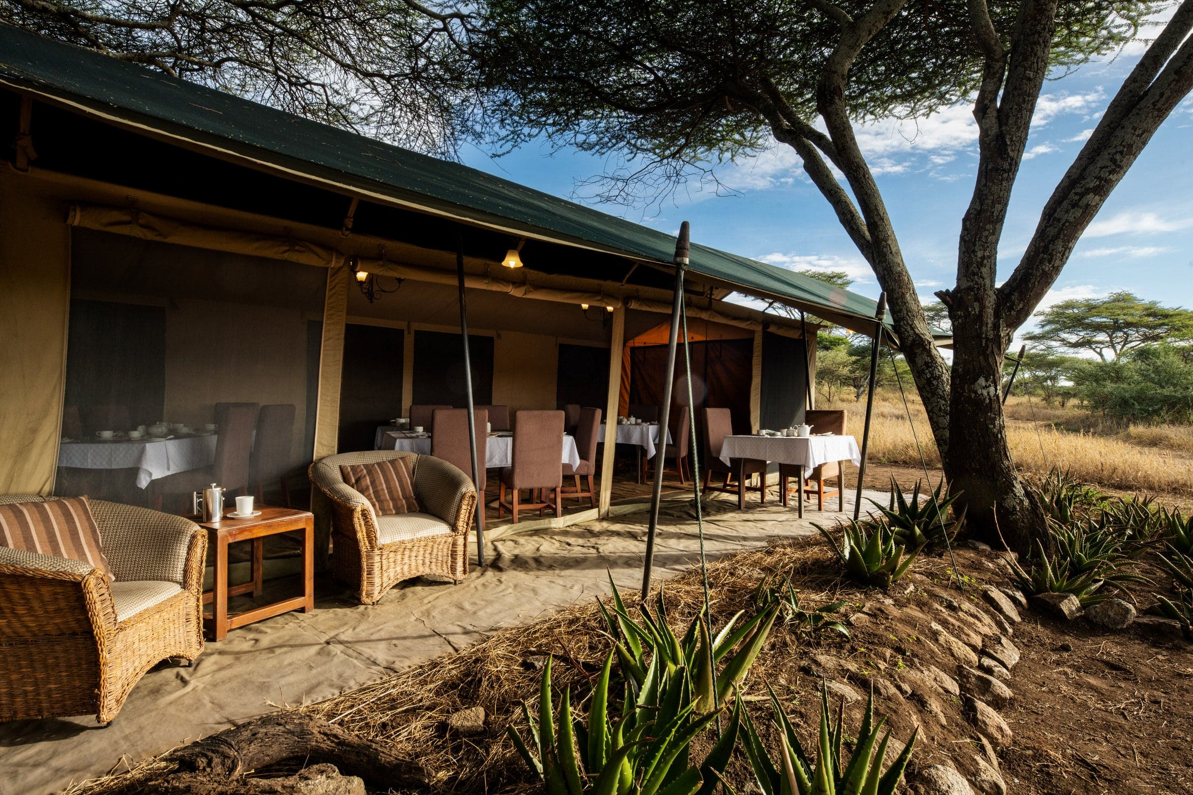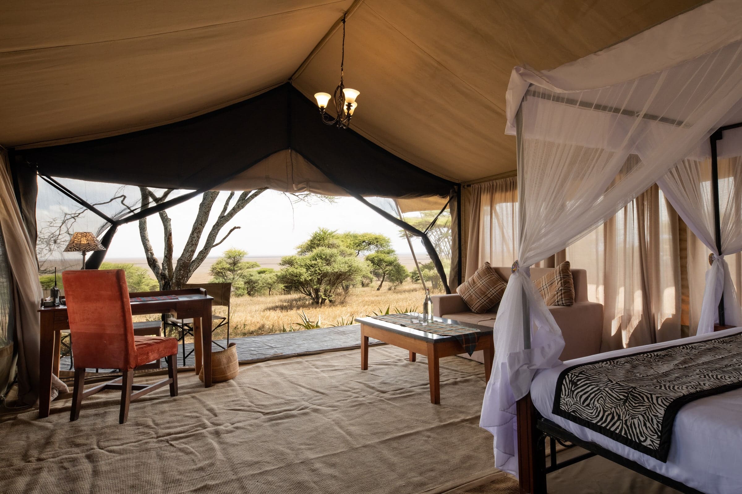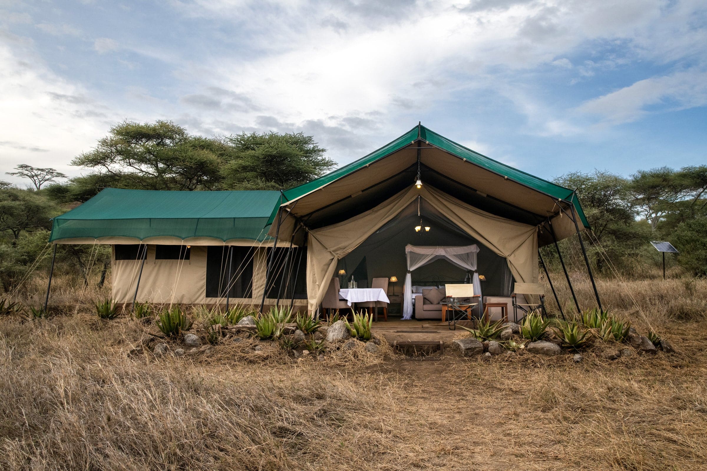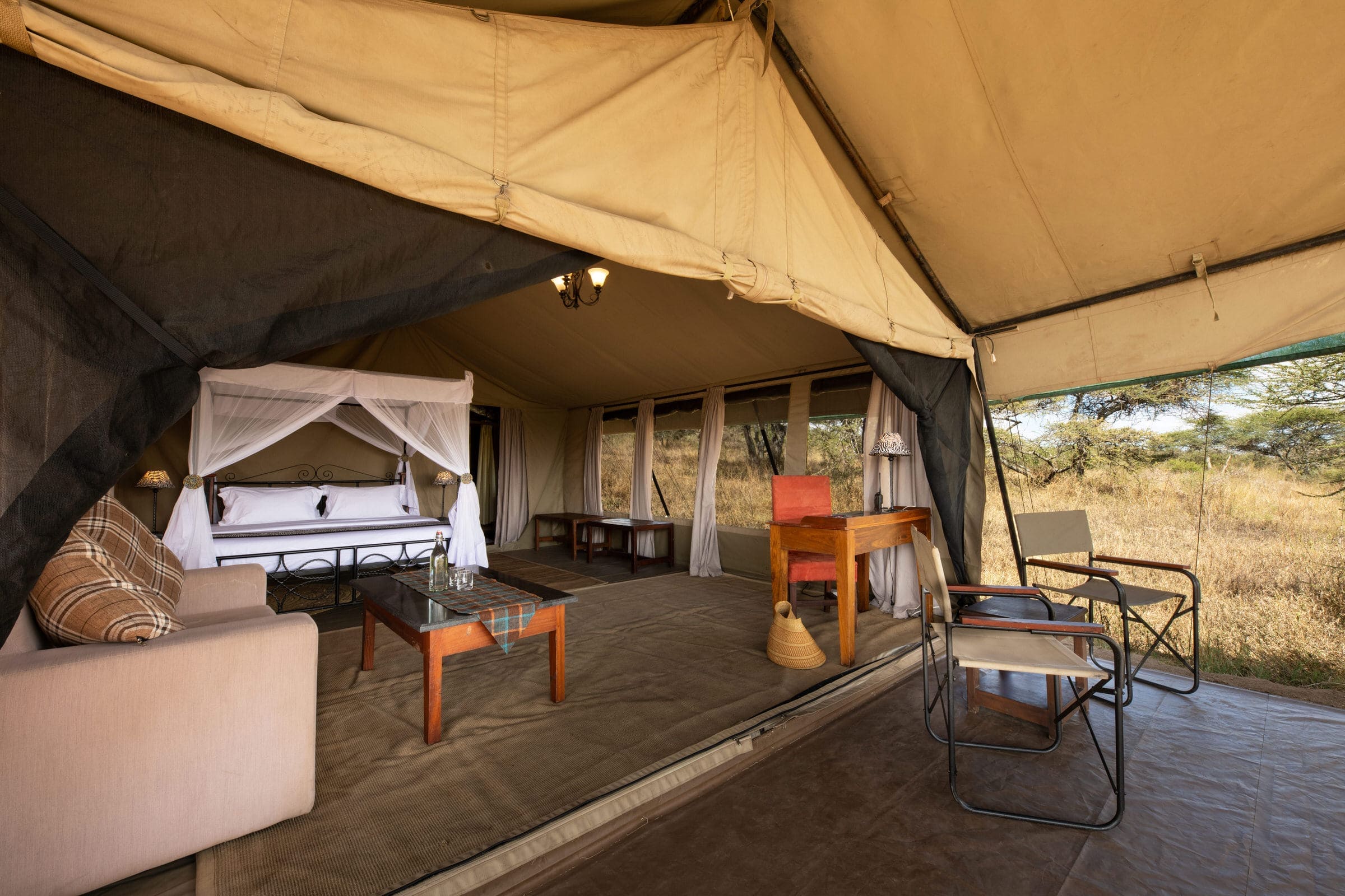 Woodlands Camps - это изысканный мобильный роскошный палаточный лагерь, спрятанный на склонах холма Нааби в непосредственной близости от озера Ндуту, Мору Копьес и Скрытой долины. Этот сезонный лагерь создается в период с декабря по март, когда большие стада миграции прибывают с севера Серенгети, и к февралю тысячи беременных самок гну собираются, чтобы родить ребенка, - поистине удивительное явление природы!