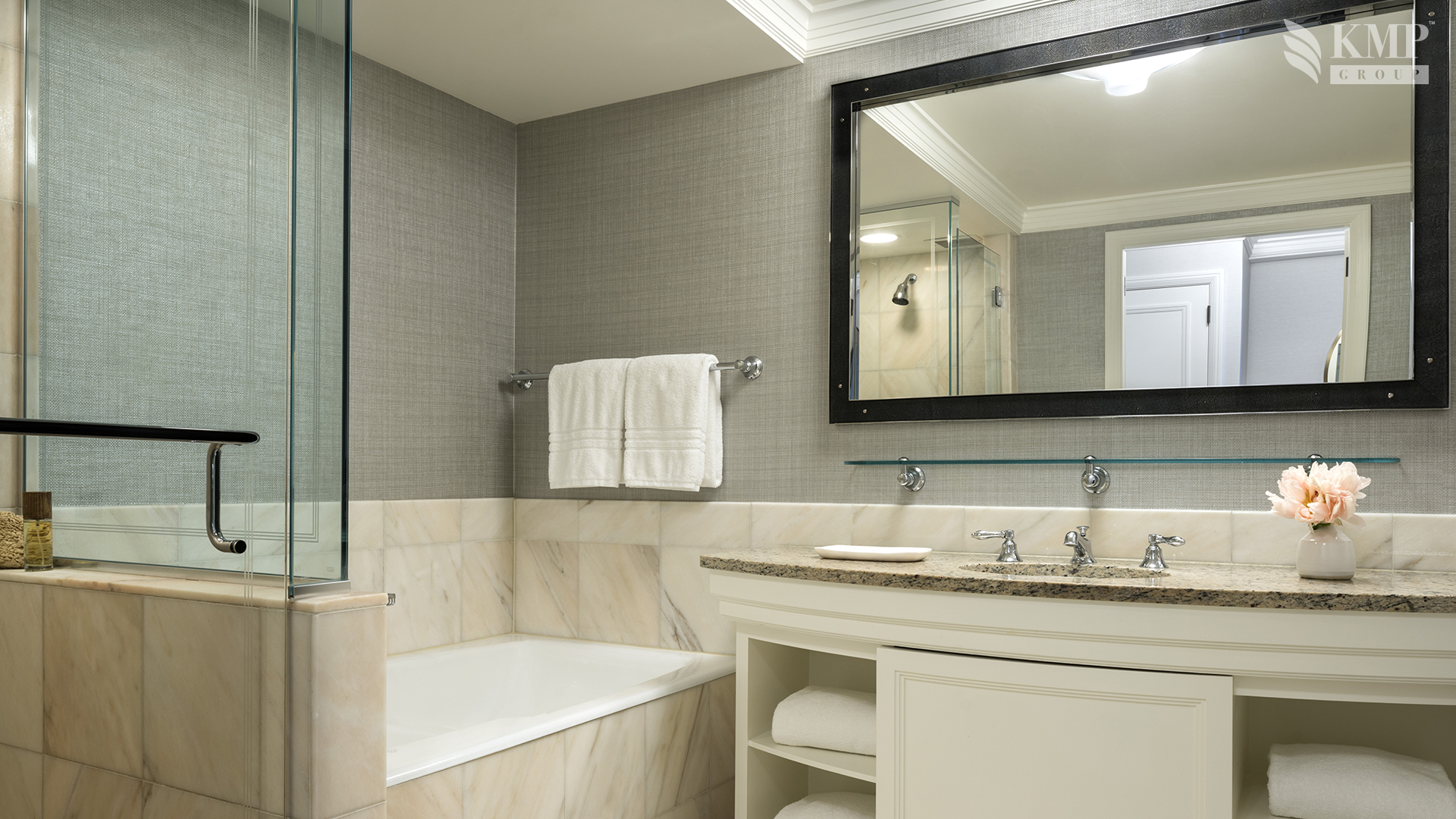 One-bedroom suite (85 кв. м): прихожая, гостиная, спальня с кроватью king-size, гардеробная зона, ванная комната с ванной и душевой кабиной, гостевой туалет. Дополнительно: DVD/CD-плеер. Расположен с 7 до 17 этаж. Панорамный вид на город. Возможно присоединение дополнительной спальни.