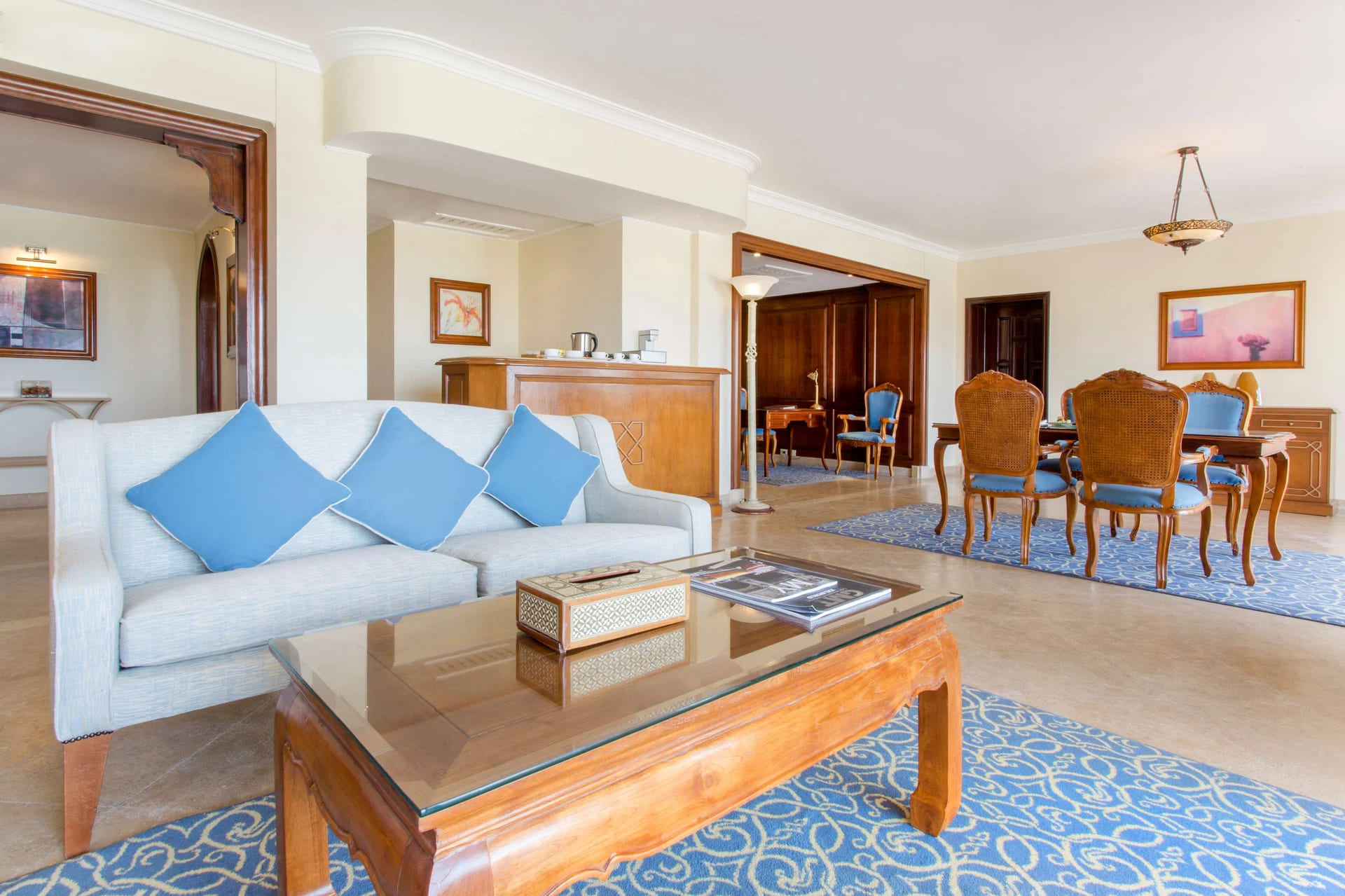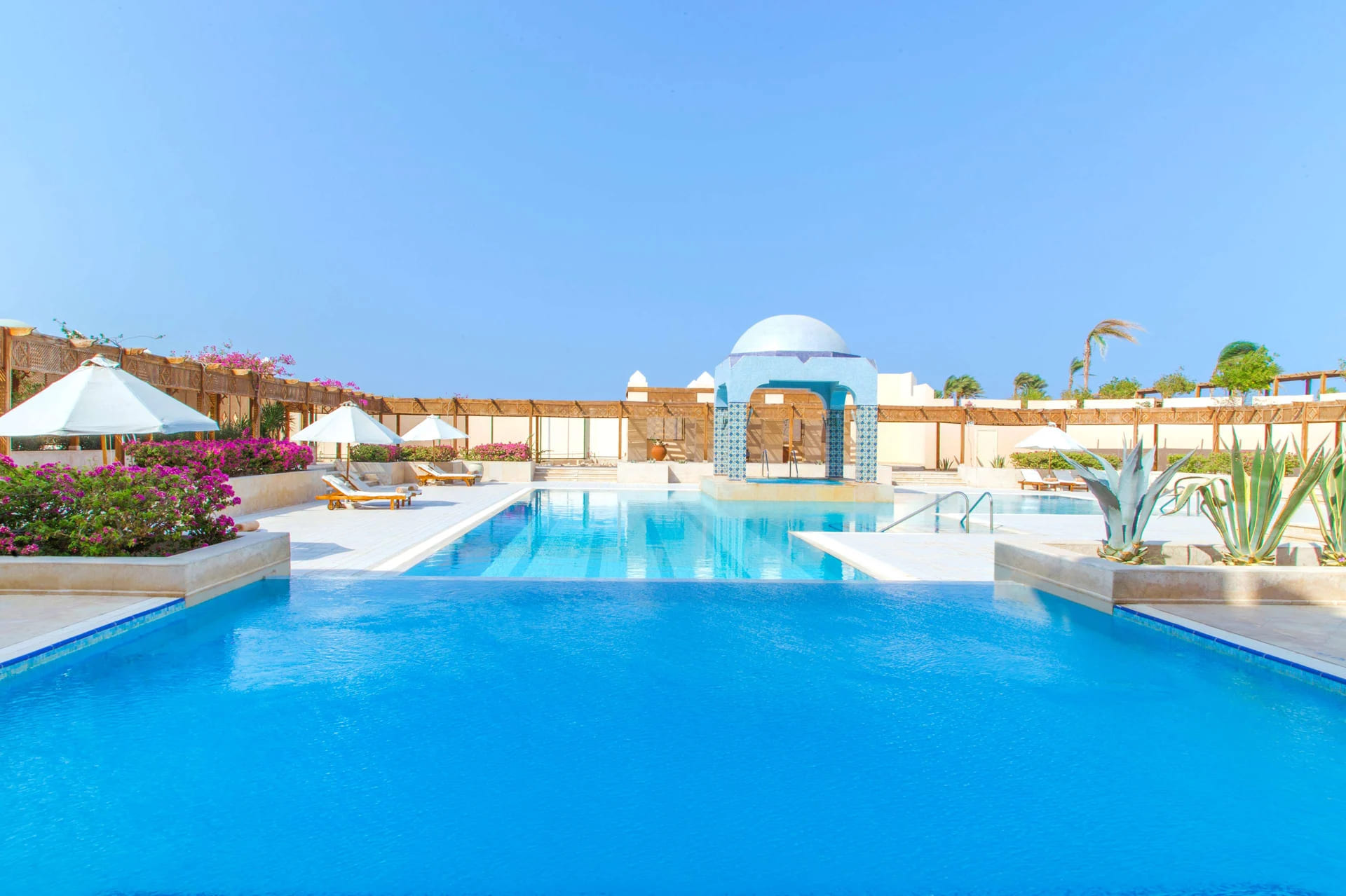 Kempinski Hotel Soma Bay, расположенный в 45 километрах от аэропорта Хургады, распахнул свои двери в мае 2009 года. Роскошный отель занимает внушительную территорию с многочисленными бассейнами и водопадами. Курорт располагает собственным песчаным пляжем — пожалуй, лучшим на египетском побережье. Его протяженность составляет более 400 м. Kempinski Hotel Soma Bay построен в мавританском стиле. Всего в отеле 325 номеров. Лучшие из них находятся в отдельном корпусе Laguna Club, расположенном на самом берегу. Из окон и с террас открываются завораживающие виды Красного моря и охристо-розовых гор. Гостям Laguna Club предоставляются особые привилегии: посещение оздоровительного центра, свежая пресса, а также специально для них открыт VIP-ресторан. Помимо этого отель располагает двумя впечатляющими номерами категории Presidential suite. Изысканные интерьеры оформлены в восточном стиле. Гостей этих номеров обслуживает персональный камердинер, а в аэропорту встречает лимузин.
