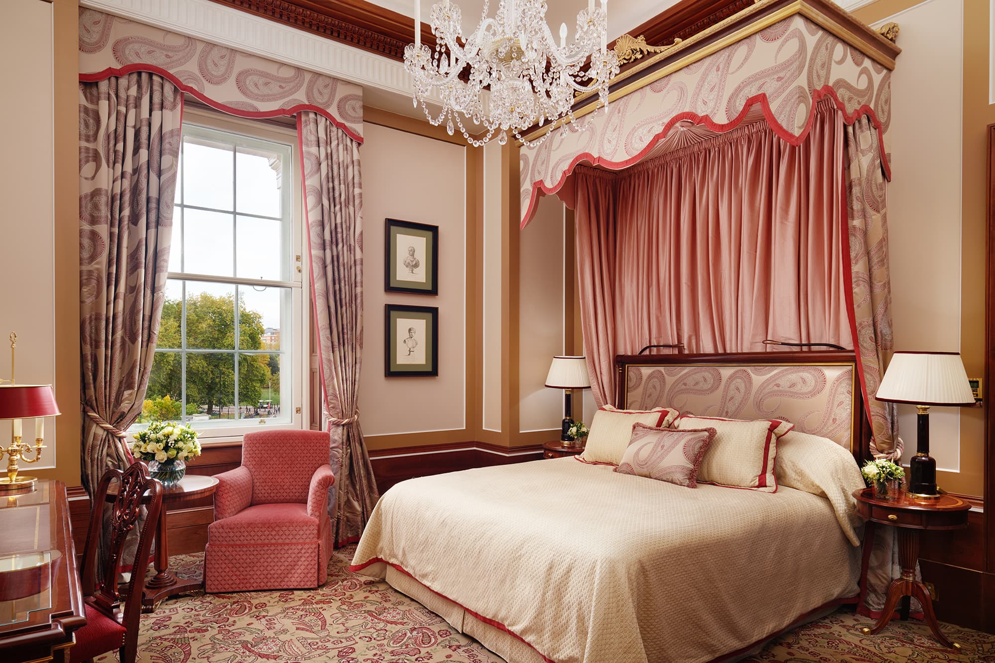 Premier Room (42 кв. м). Спальня с кроватью king-size, ванная комната. Вид на Гайд-Парк или внутренний двор. Предоставляются услуги дворецкого.
