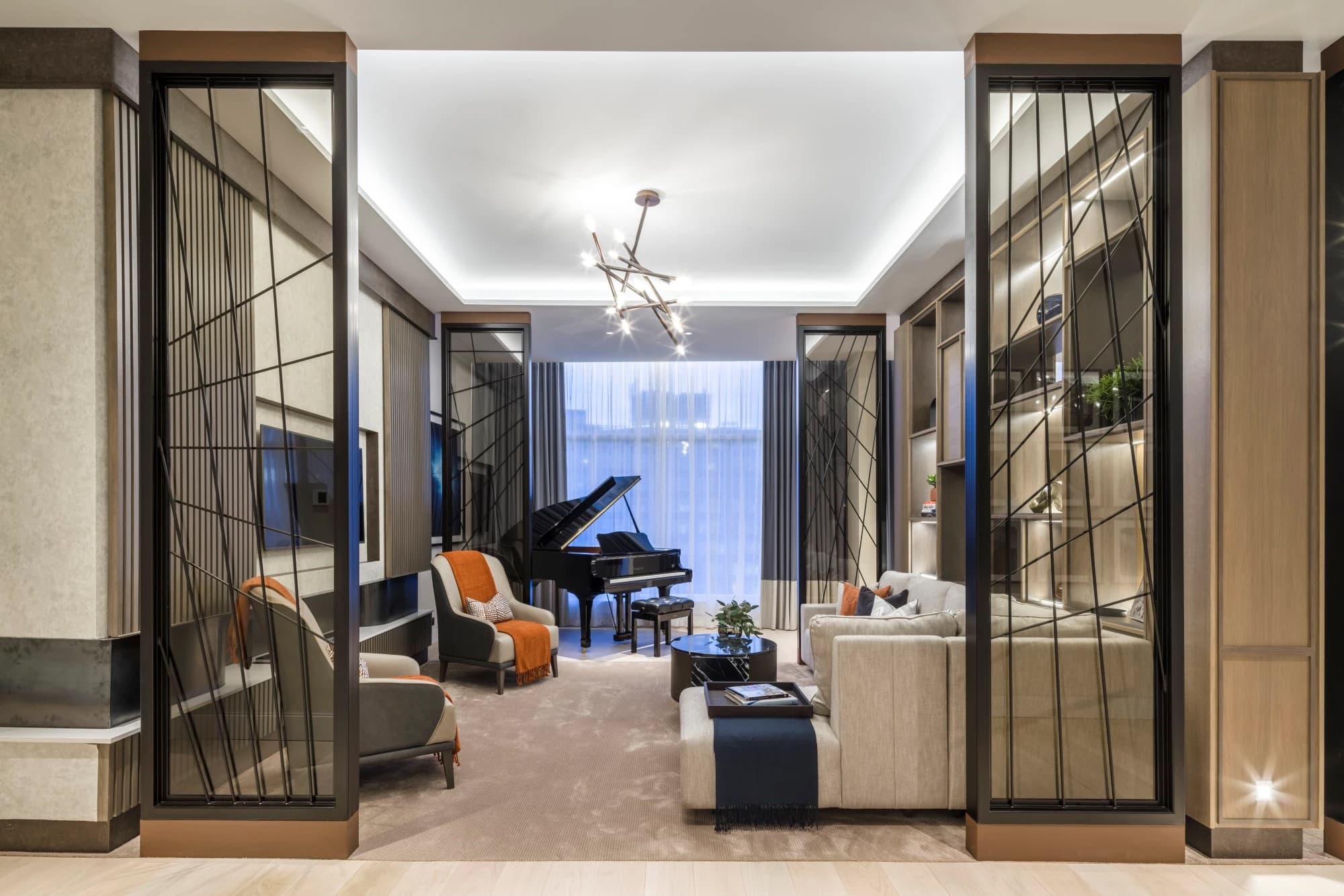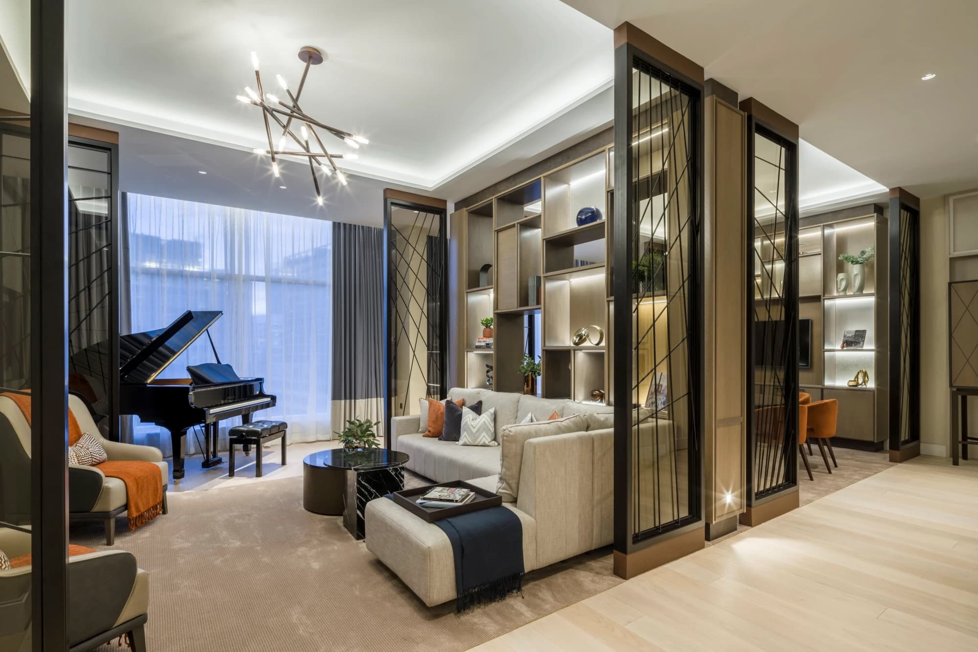 Charles Forte Suite (145 кв. м). Прихожая, гостиная с обеденной зоной, кухня, две спальни, гардеробная, две ванные комнаты. Вид на город.