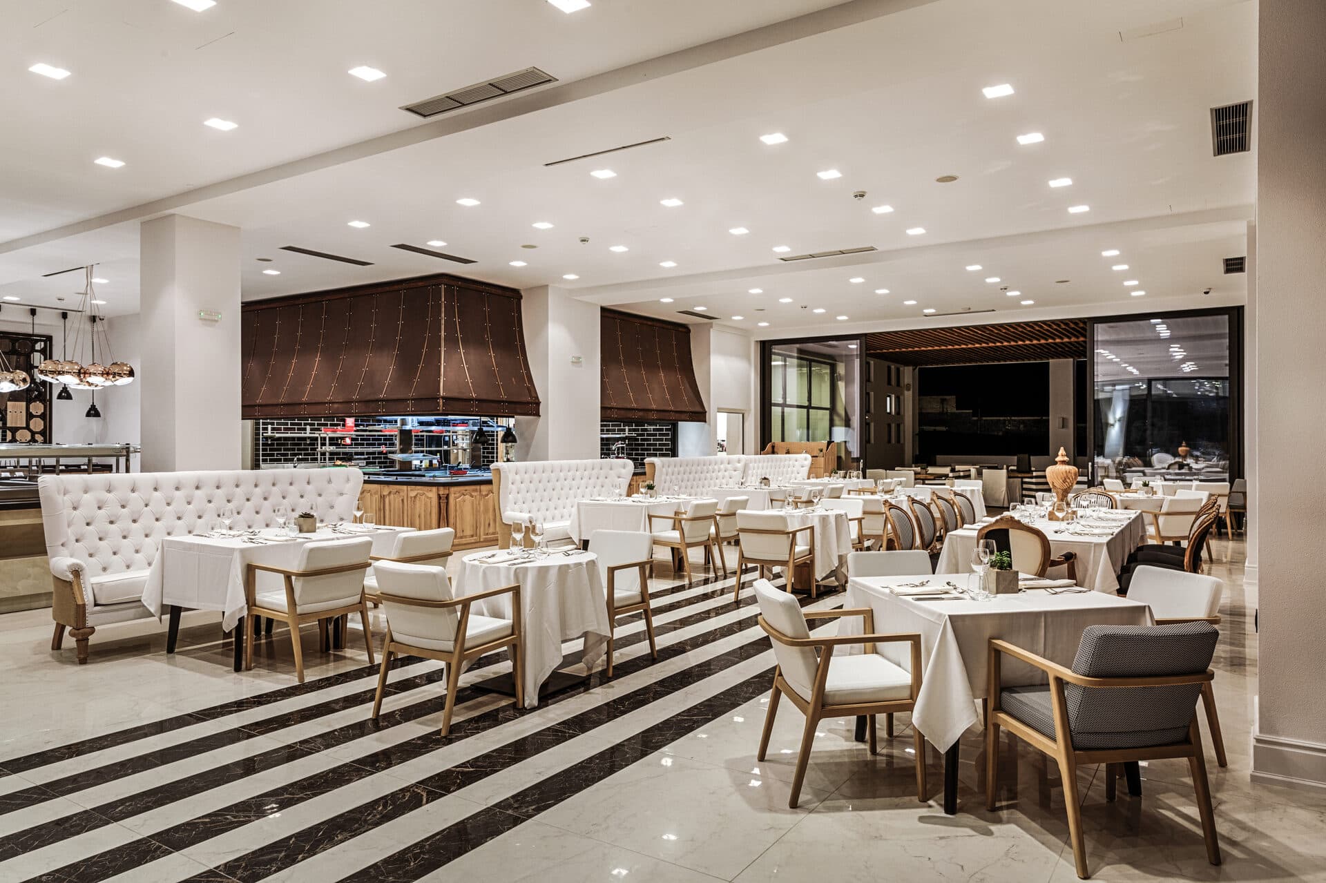 152 номера, 5 ресторанов, бар, открытый бассейн, SPA-центр (закрытый бассейн, 5 процедурных кабинетов, массаж, процедуры по уходу за лицом и телом), парикмахерская, тренажерный зал, теннисный корт, водный спорт, конференц-зал (до 120 человек), услуги консьержа, услуги няни (по запросу).
