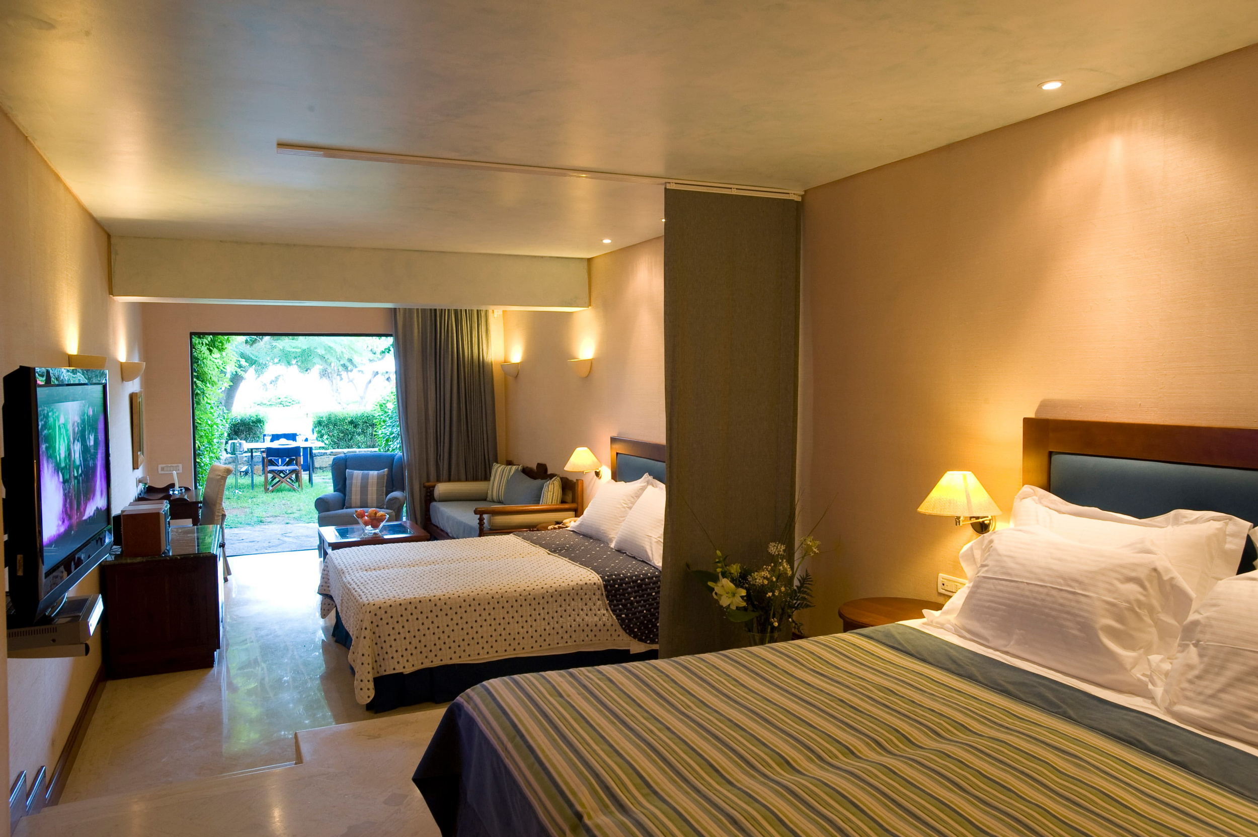 Elounda Bay Palace – живописный курорт, выполненный в архитектурном стиле Крита. Отель расположен в окружении тенистых садов на берегу Средиземного моря и занимает территорию в восемь гектаров. Идеально подходит для тех, кому нужен спокойный отдых в сочетании с первоклассным сервисом и самыми современными условиями проживания. На территории отеля два бассейна, три ресторана, три бара, три конференц-зала, три комнаты для переговоров, пять освещаемых теннисных кортов, центр водного спорта и школа подводного плавания. Пляж Elounda Bay Palace награжден престижным «Голубым флагом» за идеальное состояние и чистоту прибрежных вод. Гости отеля могут посещать рестораны и SPA-центр соседнего отеля Elounda Beach.