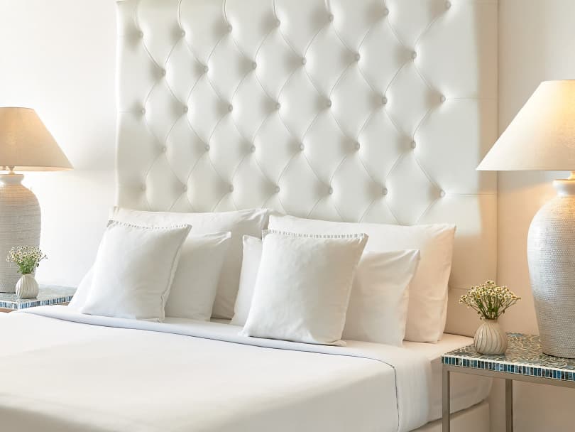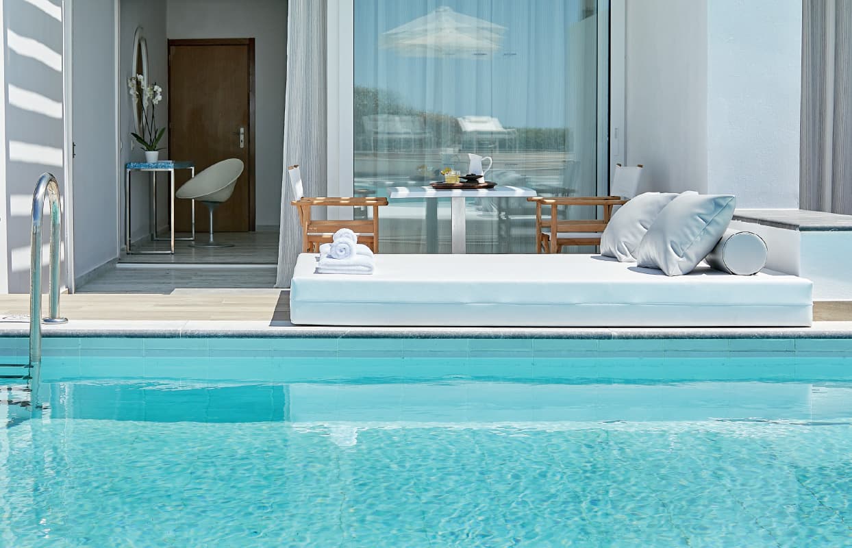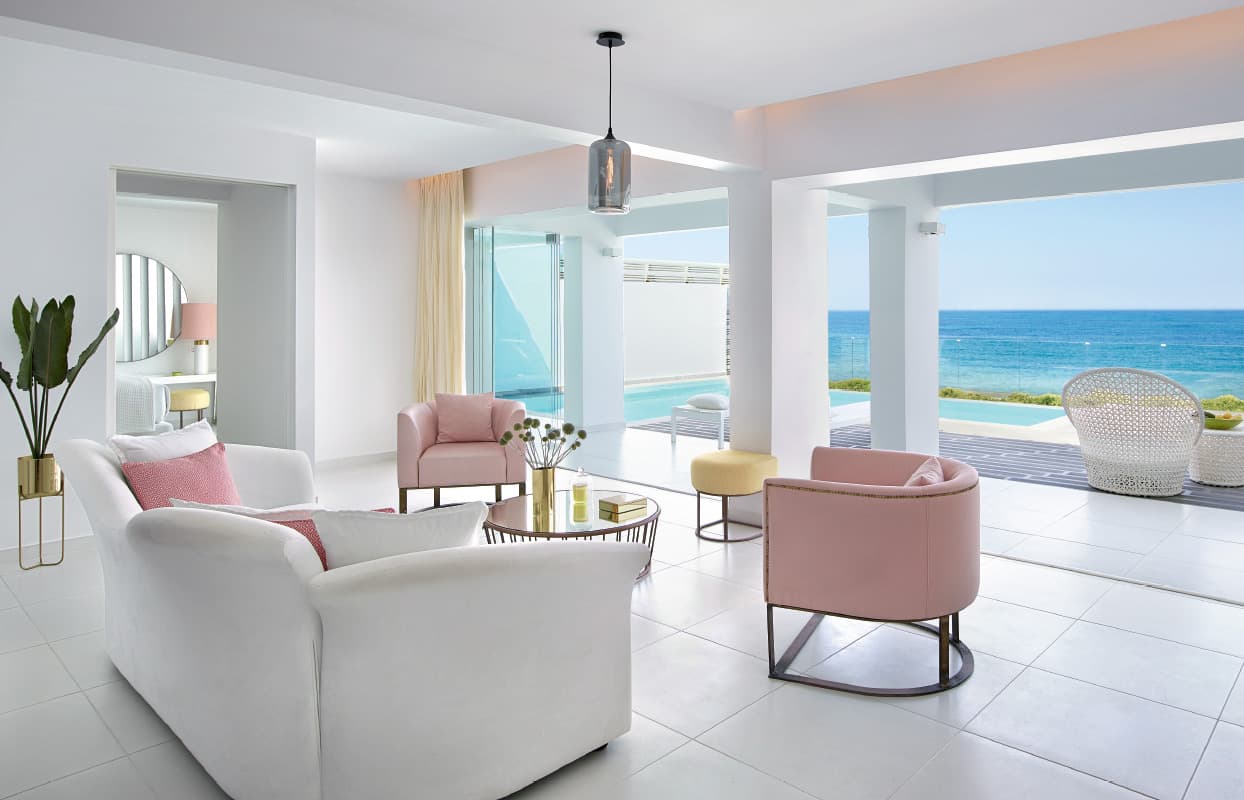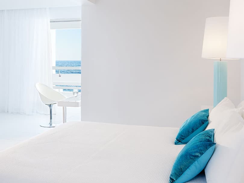 Название отеля в переводе означает «белый дворец», и оно в полной мере оправдано: белоснежное здание, выполненное в роскошном средиземноморском стиле, гармонично сочетается с яркой синевой неба. Благодаря своему уникальному расположению отель дарит гостям замечательную возможность любоваться панорамными видами на море и город Ретимно прямо с собственных террас. В просторных номерах преобладает ослепительно-белый и нежно-голубые тона, а столы и тумбочки украшены декоративной мозаикой.