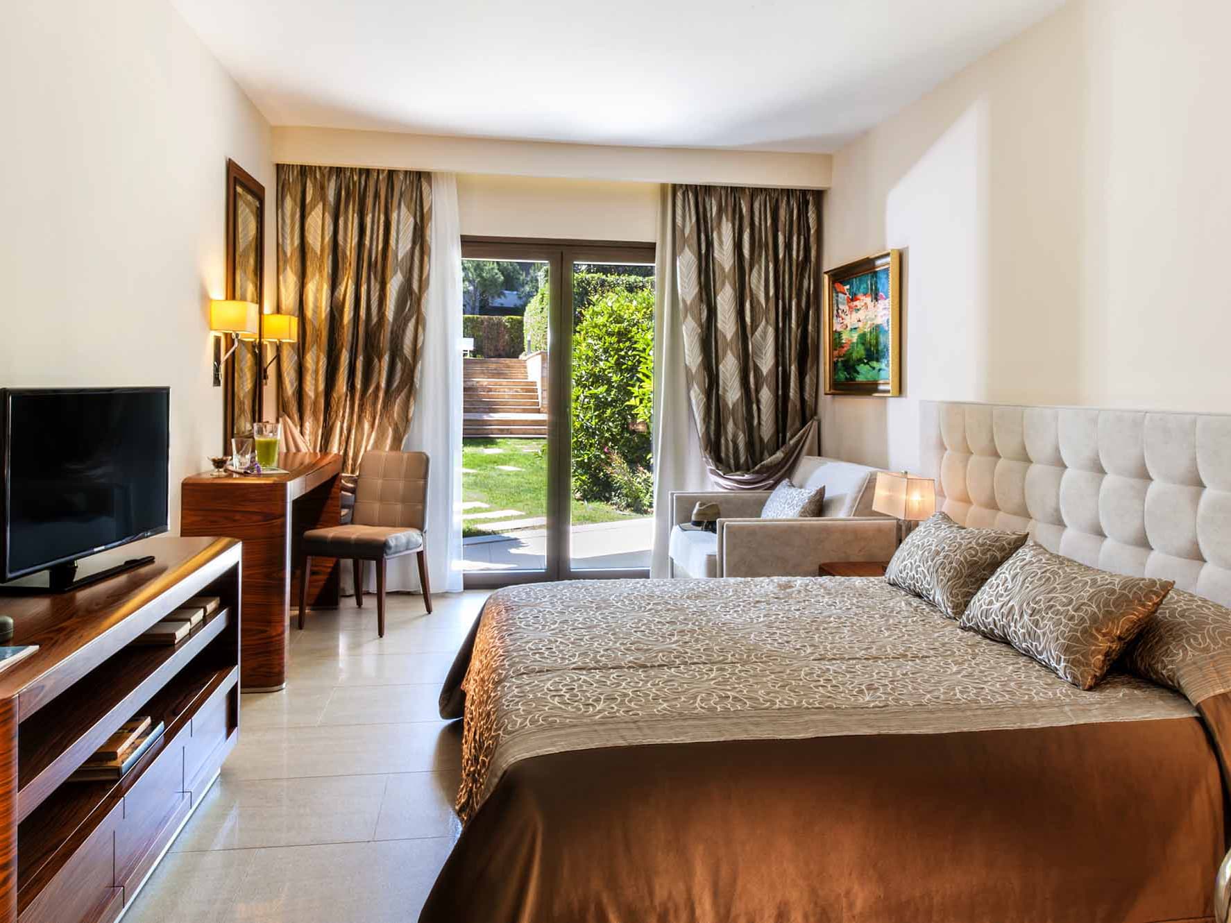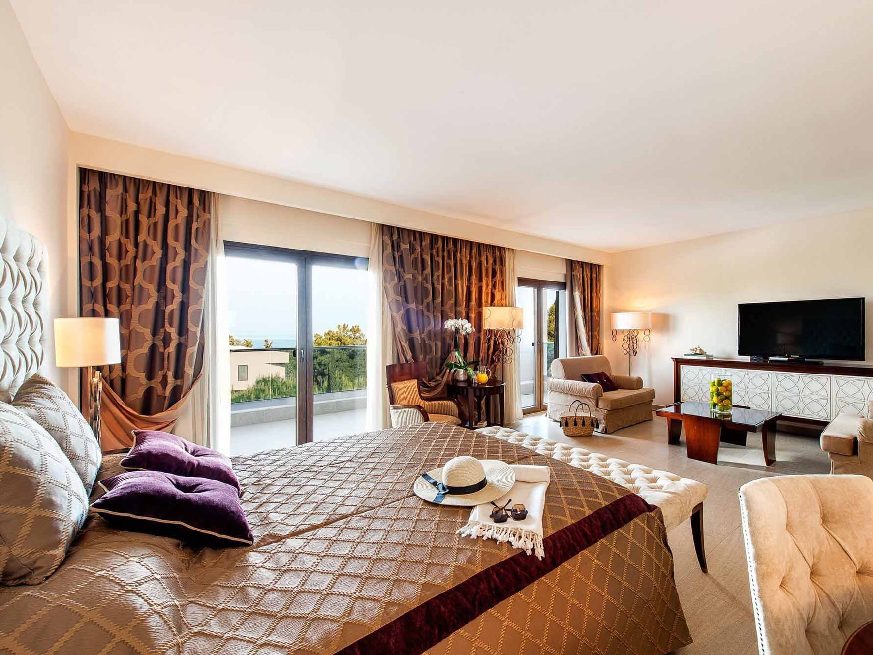 172 номера оформлены с элегантностью и безупречным вкусом. Для тех, кто привык к самому лучшему, предусмотрены 6 эксклюзивных тематических номеров, каждый из которых отличается своим неповторимым дизайном и атмосферой. Например, можно остановиться в New York suite, который выдержан в нежных лиловых тонах, или в роскошном Moscow suite с собственным лифтом. Последним штрихом станут потрясающие морские панорамы – ими можно любоваться с балконов и террас. Йога, пилатес, аэробика, 2 освещаемых теннисных корта, настольный теннис, пляжный волейбол, велосипеды, дайвинг, водное поло, центр водного спорта, бизнес-центр, конференц-зал, Wi-Fi доступ в Интернет, детский клуб, детская игровая площадка, услуги няни.