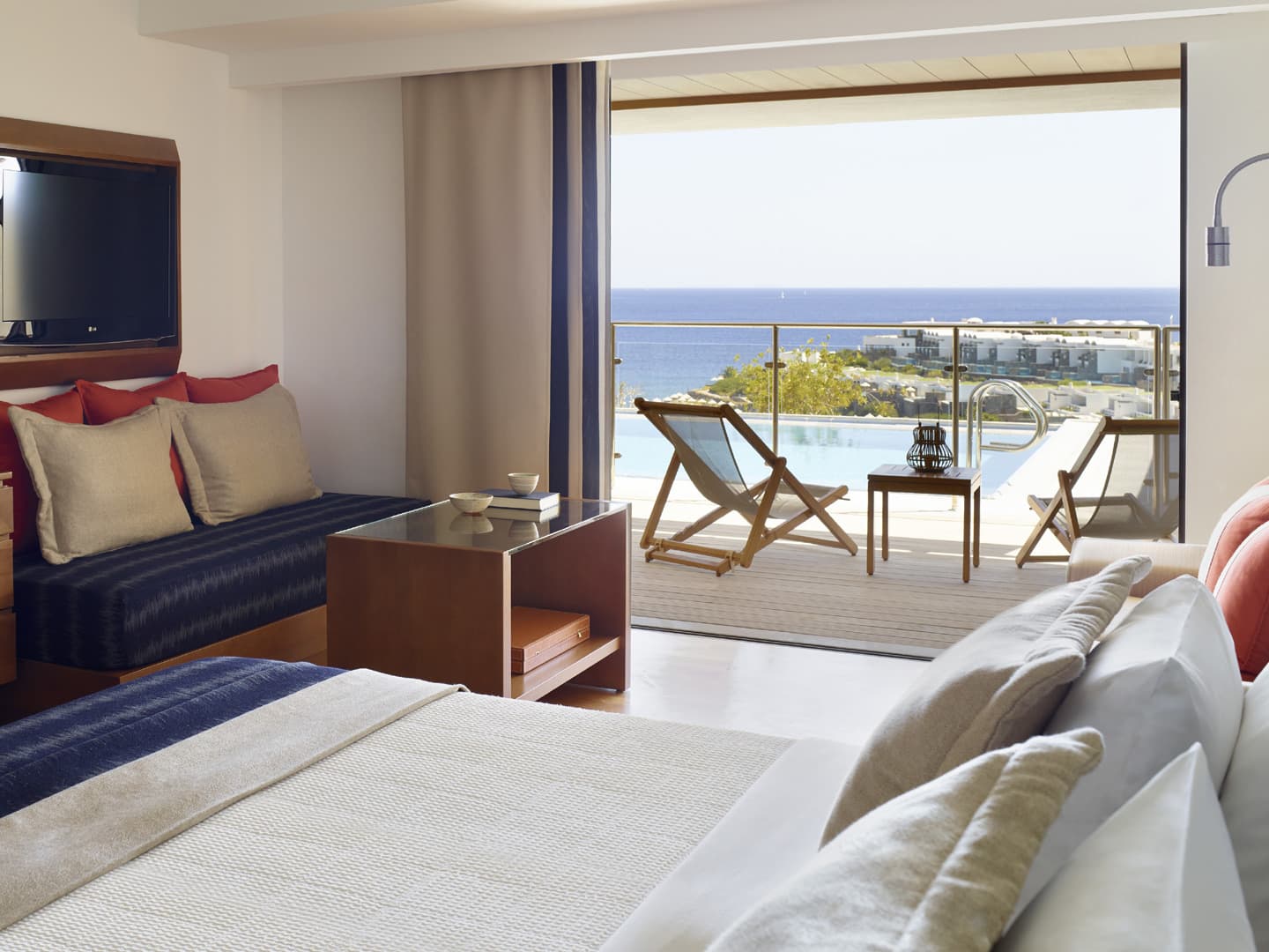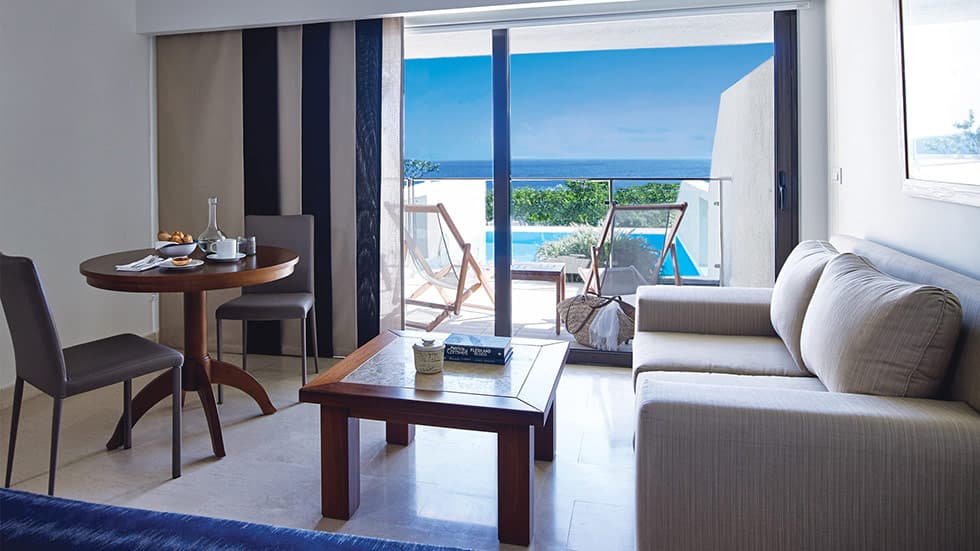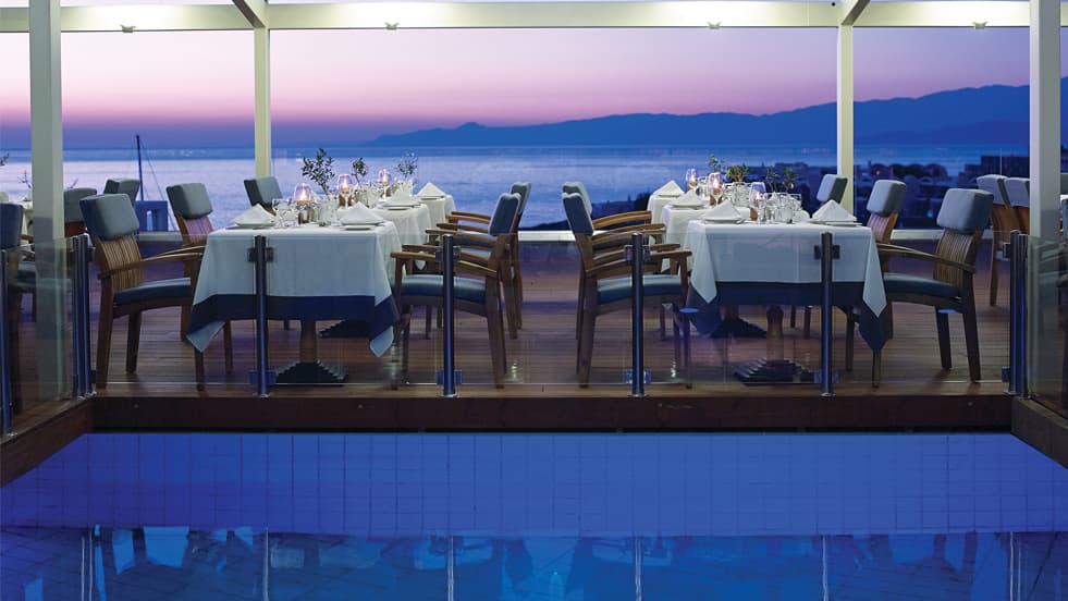 Отель расположен на берегу залива Мирабелло в престижной курортной зоне Элунда на северо-восточном побережье Крита в 70 км от аэропорта Ираклиона.
