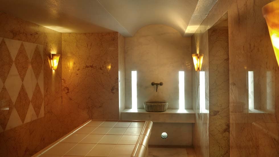 Созданный всемирно известными SPA-дизайнерами SYNTAX комплекс сочетает критскую архитектурную традицию с веяниями современного искусства, погружая вас в волшебный мир воды, камня, стекла и дерева. Полюбовавшись настенными росписями от греческого художника Паньяраса, проследуйте в центр помещения: там вас ждет наследник римских бань – мраморный тепидариум. Путешествие в мир гармонии и расслабления продолжится в классической финской сауне, санариуме с щадящим паром и влажностью, великолепных парных от немецкой компании BALNEA. Красоту мраморного хамама в оттоманском стиле можно рассмотреть в естественном освещении благодаря стеклянной мозаике на потолке.
