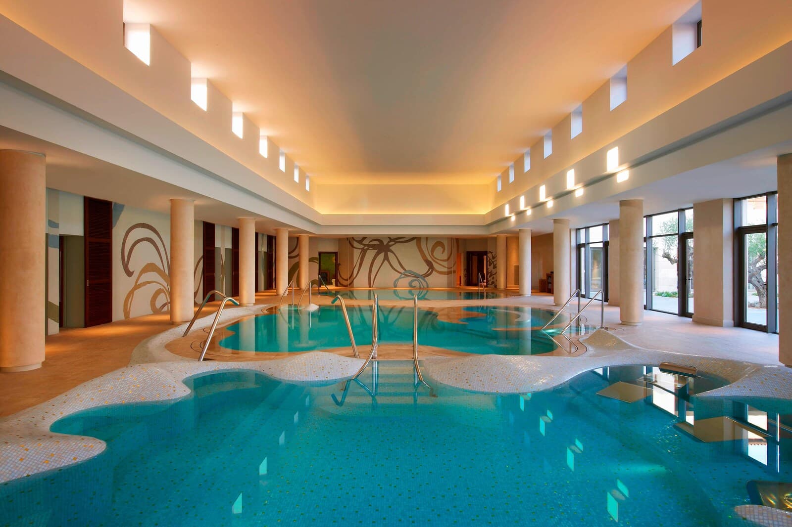 Комплекс окружен зелеными холмами, виноградниками и оливковыми рощами, создающими особый колорит. Умеренный климат дарит солнечные дни и тепло круглый год. А живописнейшие заливы, горы и песчаные пляжи образуют естественный пейзаж, в который гармонично вписан гостиничный комплекс, выдержанный в традиционном греческом стиле. К услугам гостей бесподобные номера, люксы и виллы с изысканной архитектурой и завораживающими видами на море и поля для гольфа. В ресторанах вам предстоит поистине незабываемое гастрономическое путешествие: шедевры средиземноморской, итальянской, греческой и ливанской кухни, украшенные винами из впечатляющей коллекции отеля, покорят сердце любого гурмана. Блюда из из лучших продуктов региона, включая ароматное оливковое масло, сочетают в себе секреты традиционных рецептов, современные веяния и смелые эксперименты знаменитых шеф-поваров.