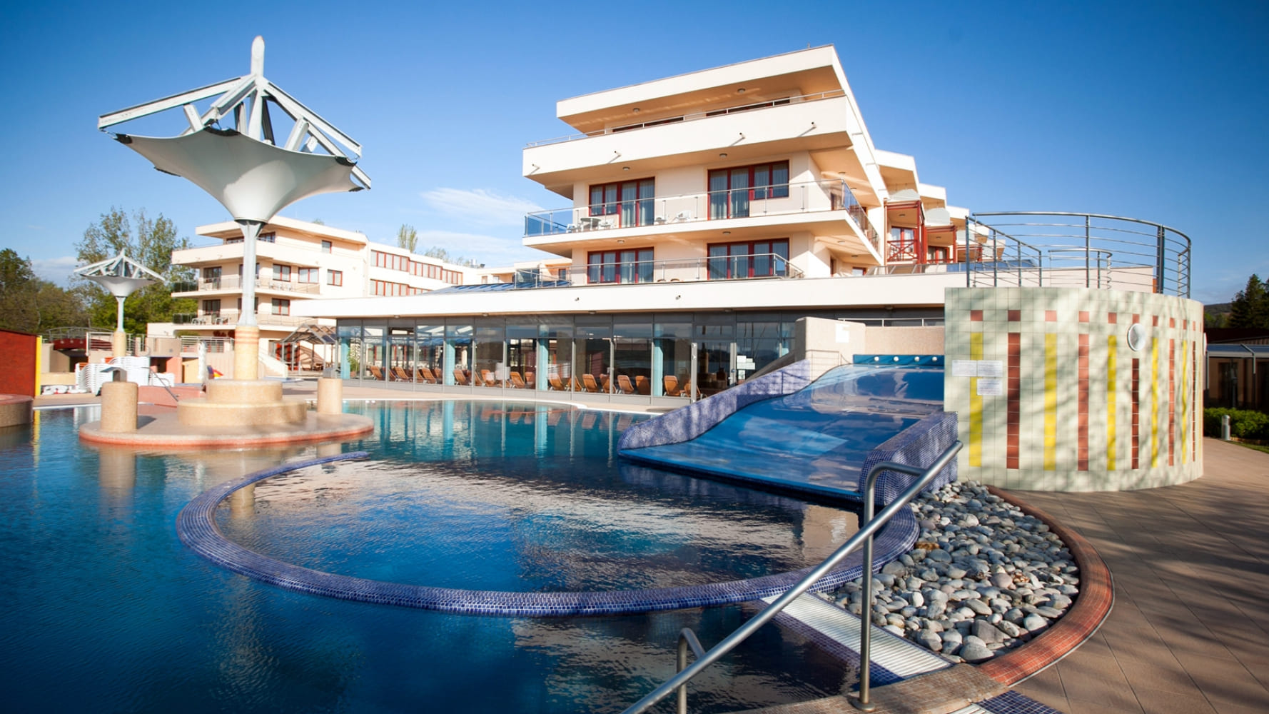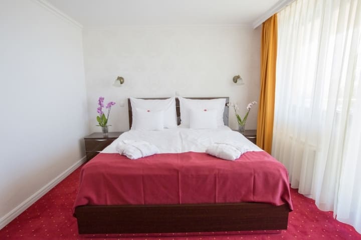 Exclusive apartment 3rd floor (90-110 кв. м): балкон, гостиная, 2 спальни, 2 ванные комнаты (каждая – с ванной и душевой кабиной). Расположены на третьем этаже. Панорамный вид на озеро Балатон.