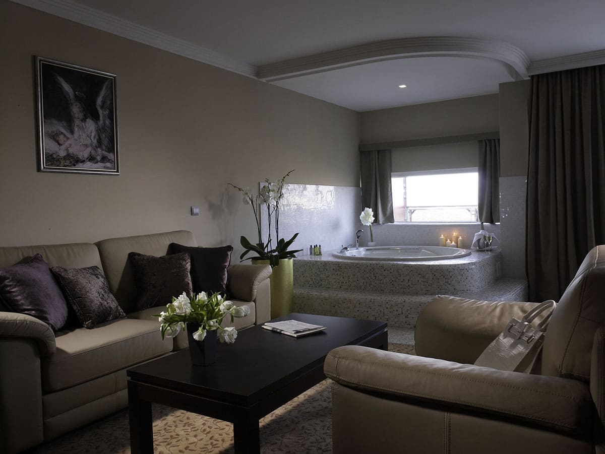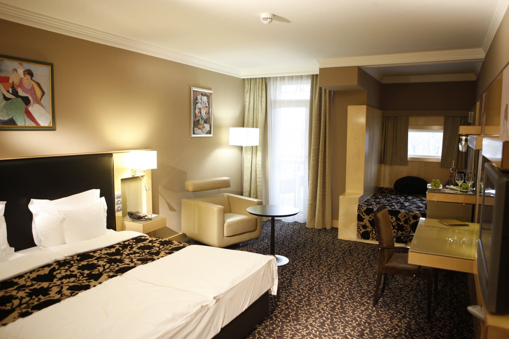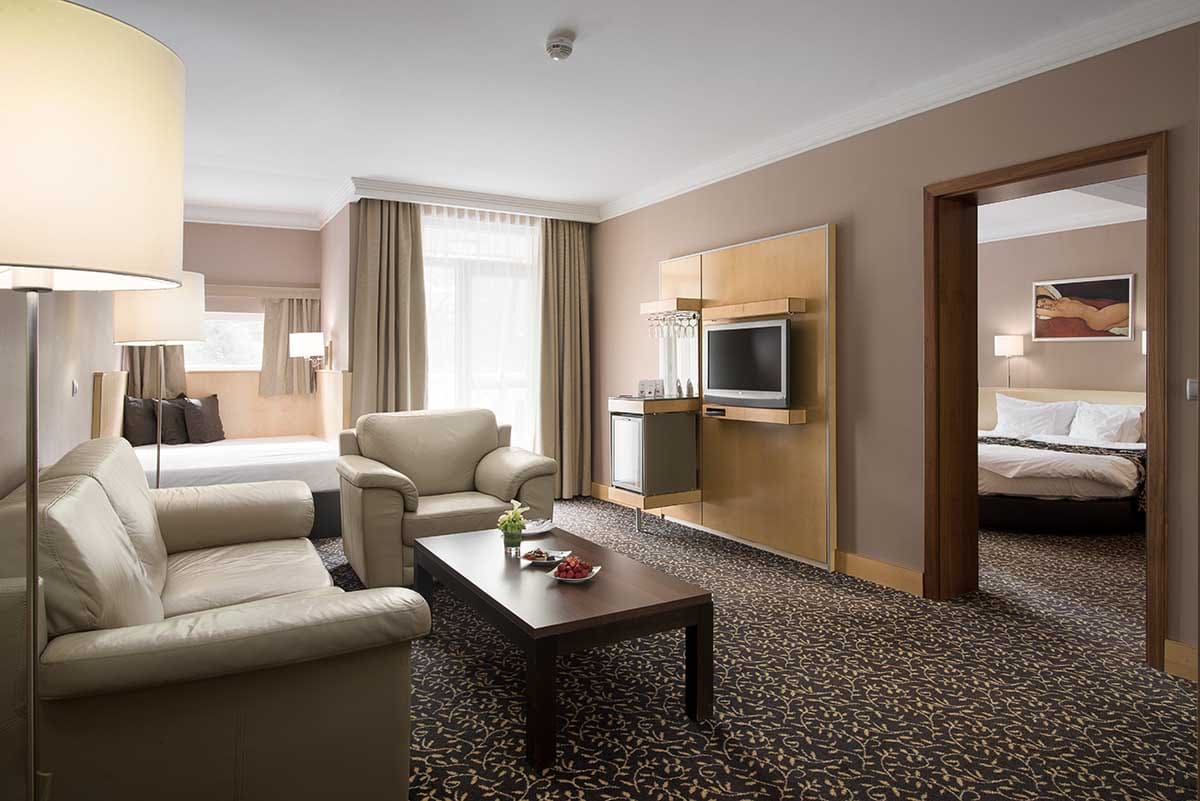 Premium suite (42-63 кв. м): гостиная, спальня с двуспальной кроватью, ванная комната.