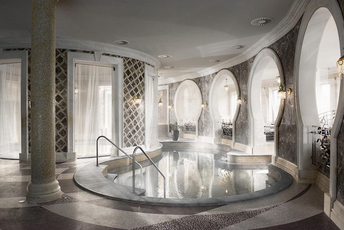 Double room king (37 кв. м): спальня с круглой кроватью king-size и джакузи, ванная комната.