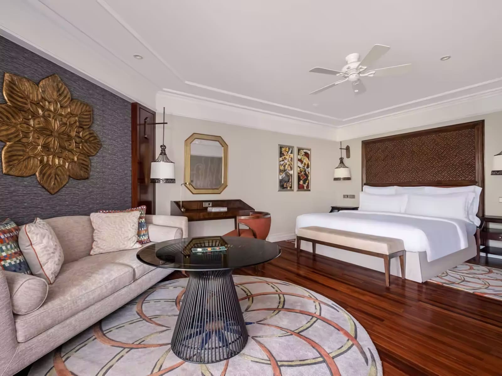Номера курортного отеля украшены балийскими произведениями искусства. В числе удобств собственная терраса, просторная отделанная мрамором ванная комната с ванной и туалетно-косметическими принадлежностями, телевизор со спутниковыми каналами, сейф и принадлежности для чая/кофе.