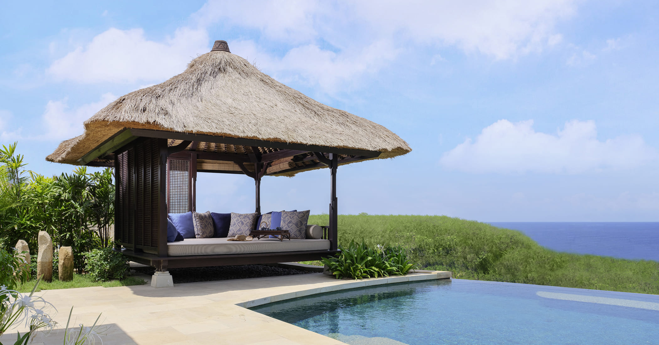 32 приватные виллы с бассейнами воплощают утонченный шарм для ценителей путешествий, ищущих элегантности, уединения и культурных открытий. В каждой из наших вилл с бассейном, обилие солнечного света струится через двери патио, чтобы отразиться от роскошных паркетных полов. За кроватью размера king-size висят картины из мягкого батика, созданного местными мастерами в то время, как ротанговая мебель дает с комфортом насладиться потрясающими видами на частный сад и океан за ним. Виллы оборудованы открытым и закрытым душем, в дополнение к ванным, в каждой есть коврики для йоги и пляжные комплекты. К виллам прикреплены батлеры, их сервис доступен круглосуточно.