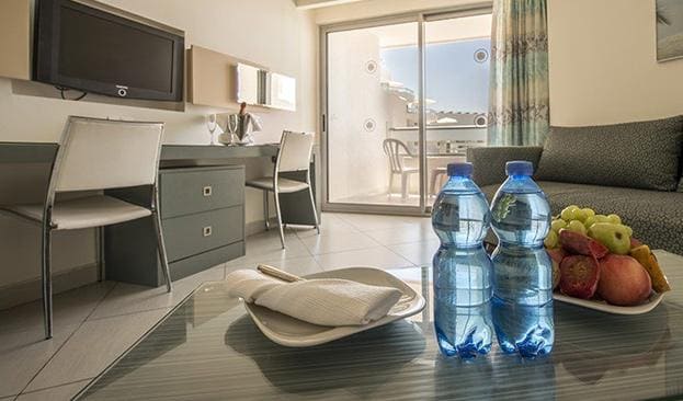 Junior Suite - cовременный дизайн номера позволяет разместить в нем большую спальню и отдельную гостиную с диван-кроватью для детей. Номера Junior подходят для 2 взрослых и 2 детей, плюс младенец.