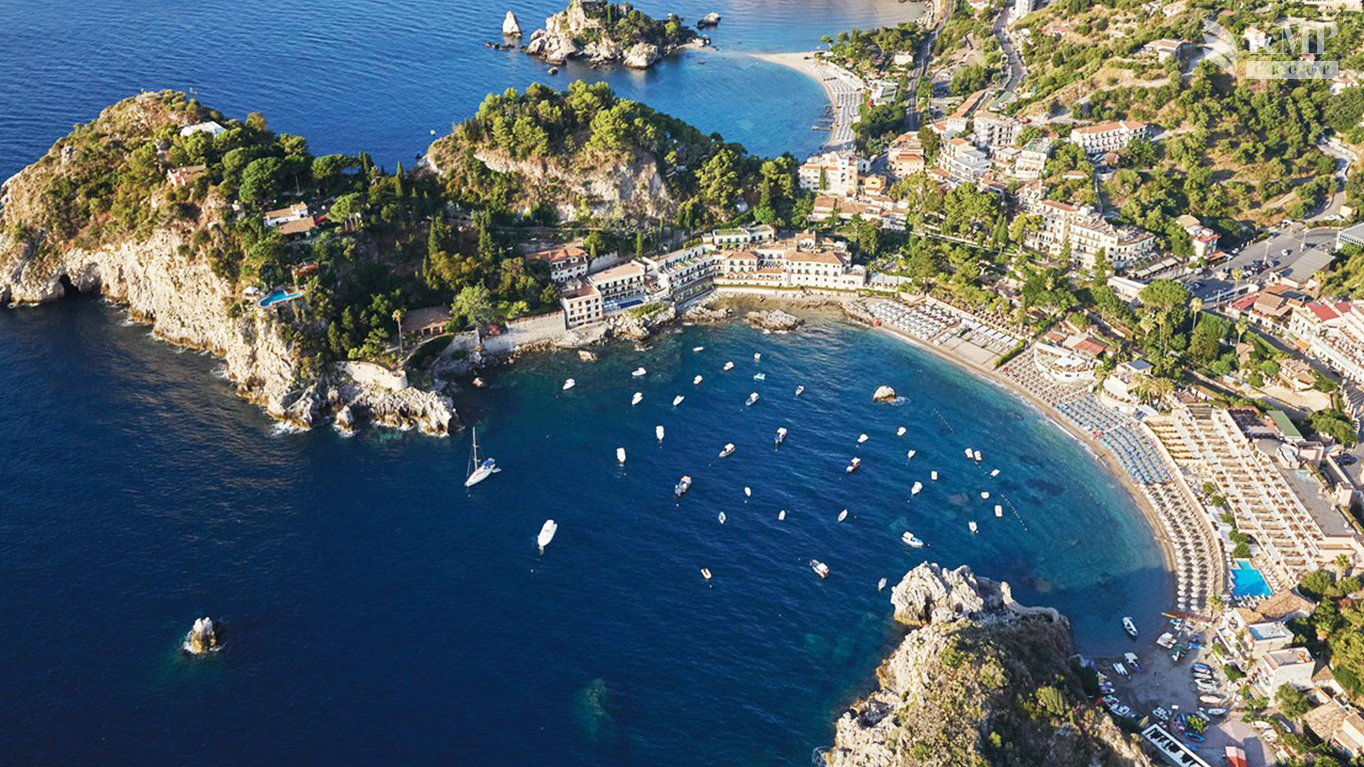 Mazzaro suite. Терраса, спальня с гостиной зоной, ванная комната с ванной и душевой. Вид на залив.
