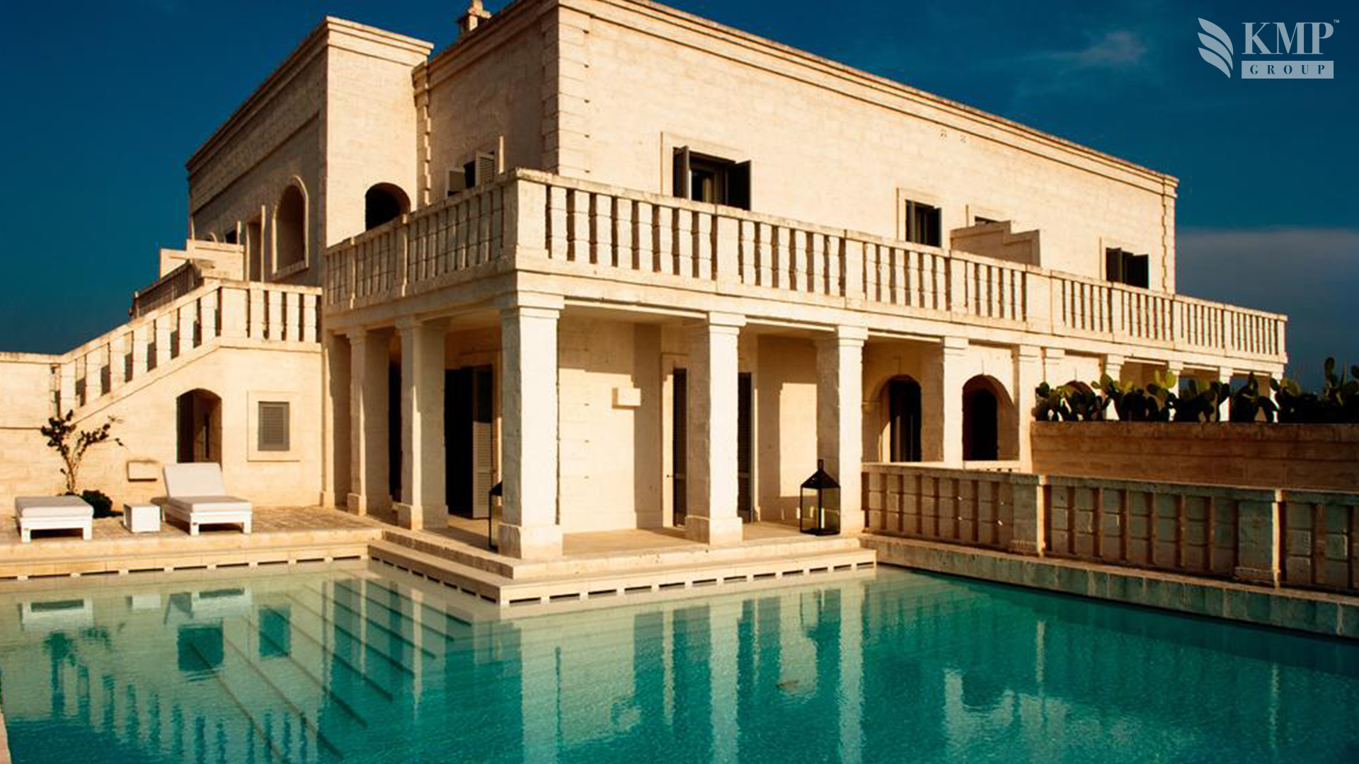 Villa Padronale (500 кв. м). Трехэтажная вилла с частным садом с персональным бассейном, патио, террасой, двумя гостиными, столовой, кухней, кабинетом, семью спальнями, четыремя ванными комнатами, двумя гардеробными, гостевым санузлом. Вид на море, холмы, долину Иттия и гольф-поле. Предоставляются услуги персонального камердинера.