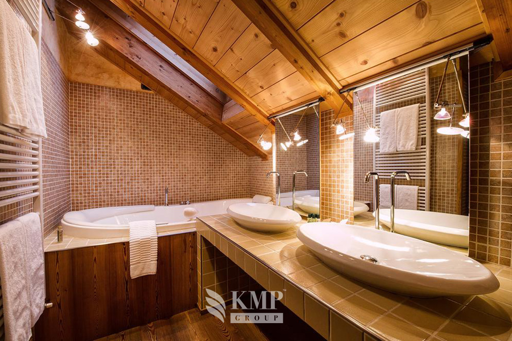 Junior Suite Sunny Side (25-27 кв. м). Комфортабельные, просторные и очень светлые номера, выходящие на юг располагают основной спальней,гостиной с диваном-кроватью и большой ванной комнатой. Интерьер в традиционном стиле, деревянный паркет и деревянная обшивка стен помогают создать уютную атмосферу, идеально подходящую для спокойного отдыха в горах.