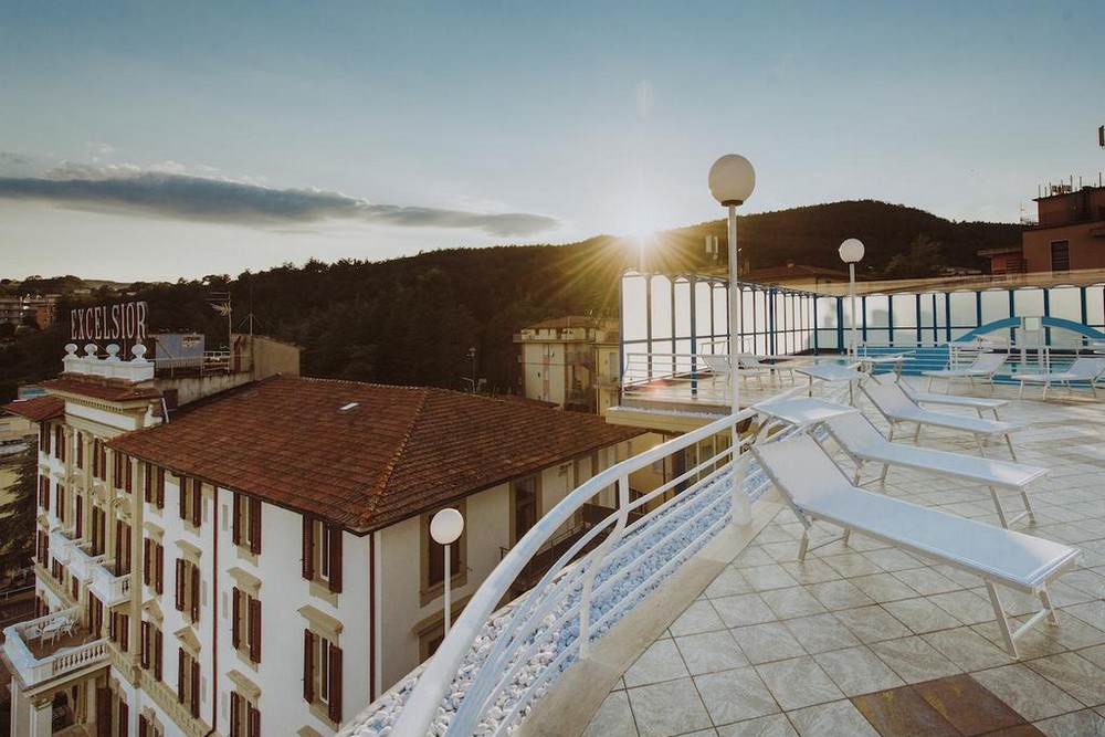 Этот изысканный отель был построен в 1927 году. Гранд-отель Excelsior более 80 лет находится под управлением одной семьи. К услугам гостей бассейн на крыше, сауна и ресторан. Отель находится в центре коммуны Кьянчано-Терме, в 10 минутах ходьбы от термального парка «Аква Санта» и оздоровительного центра.