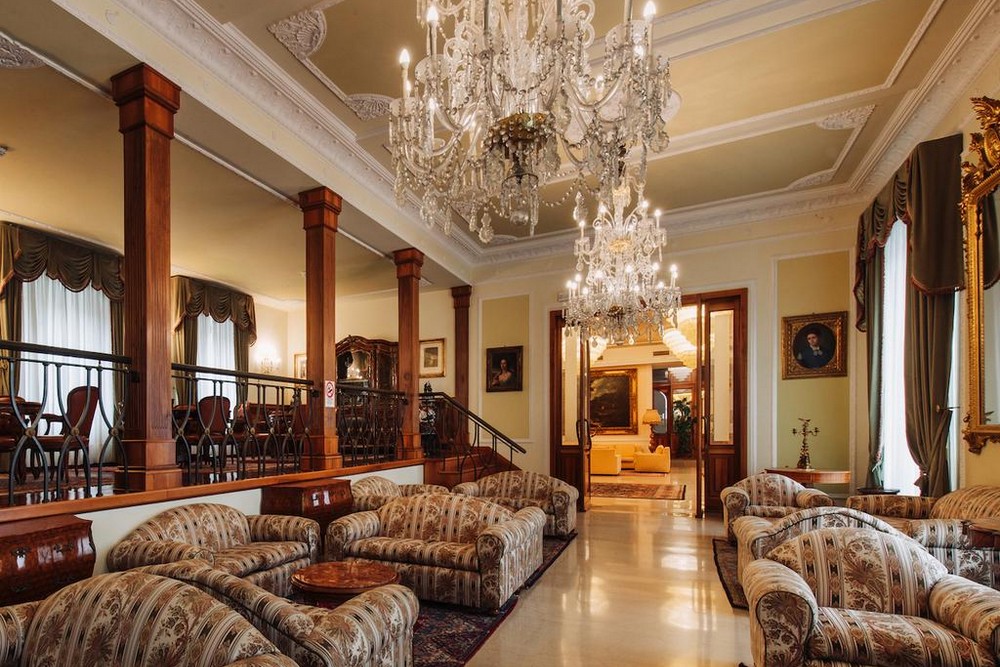 По утрам в зимнем саду со стеклянными стенами сервируется континентальный завтрак. В ресторане гранд-отеля гостям предложат фирменные блюда тосканской и интернациональной кухни.