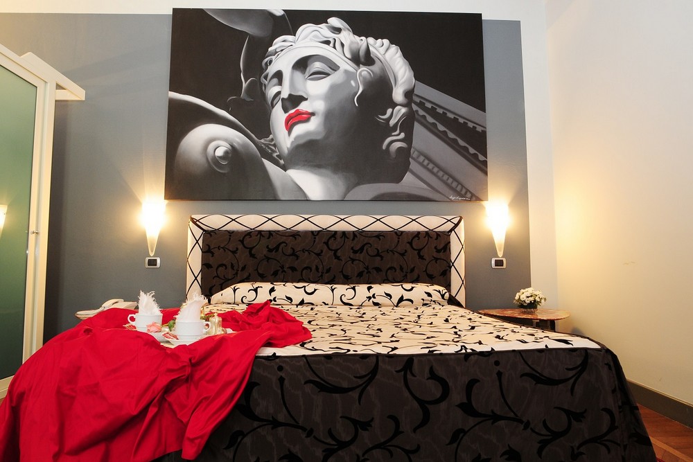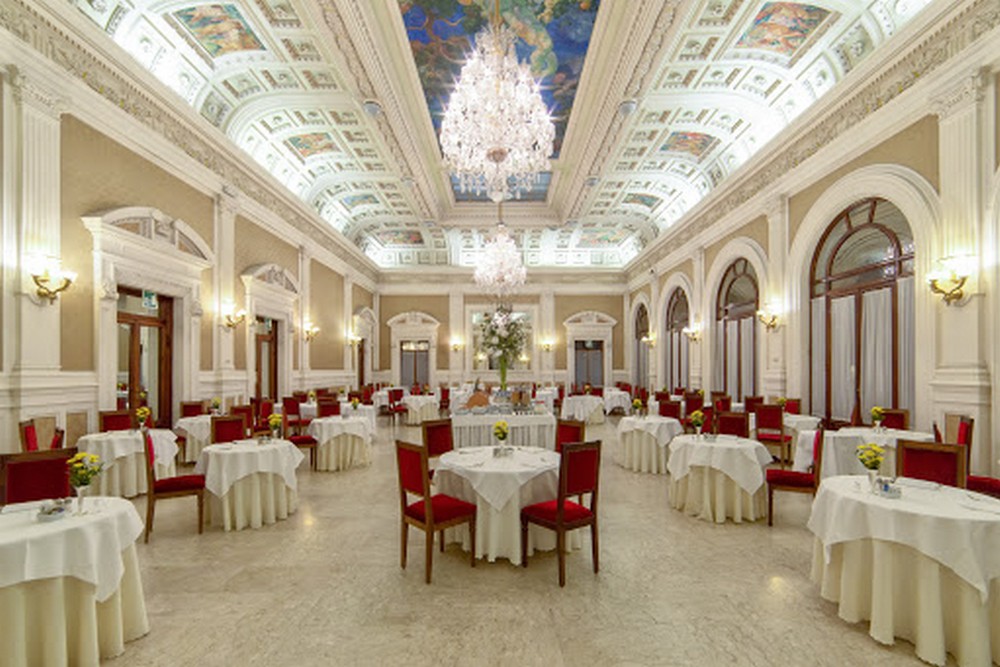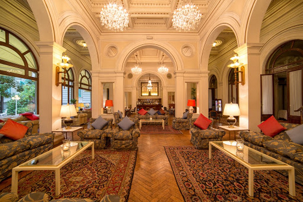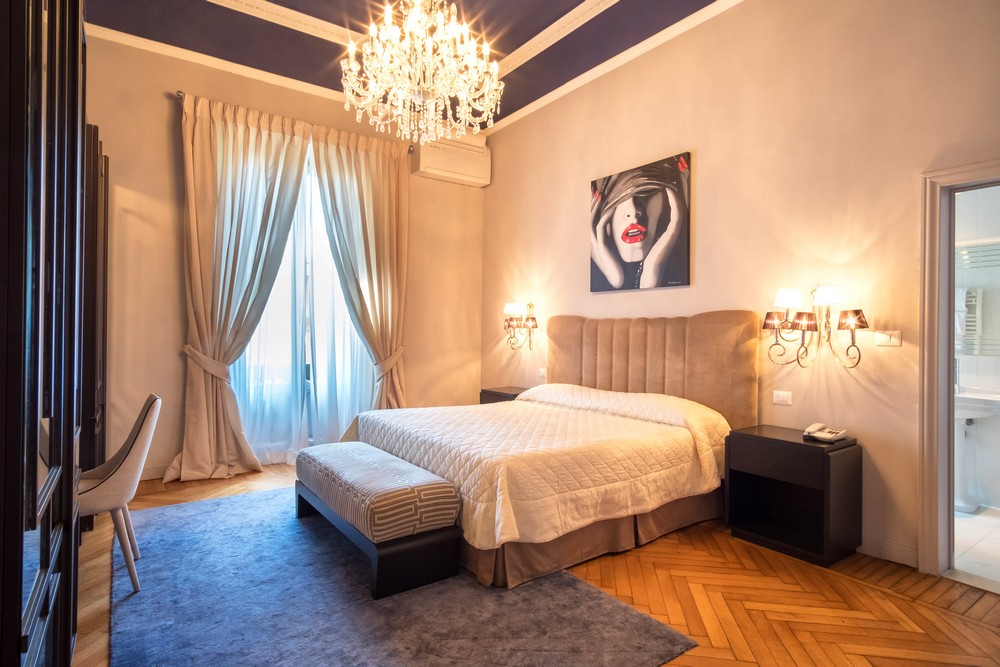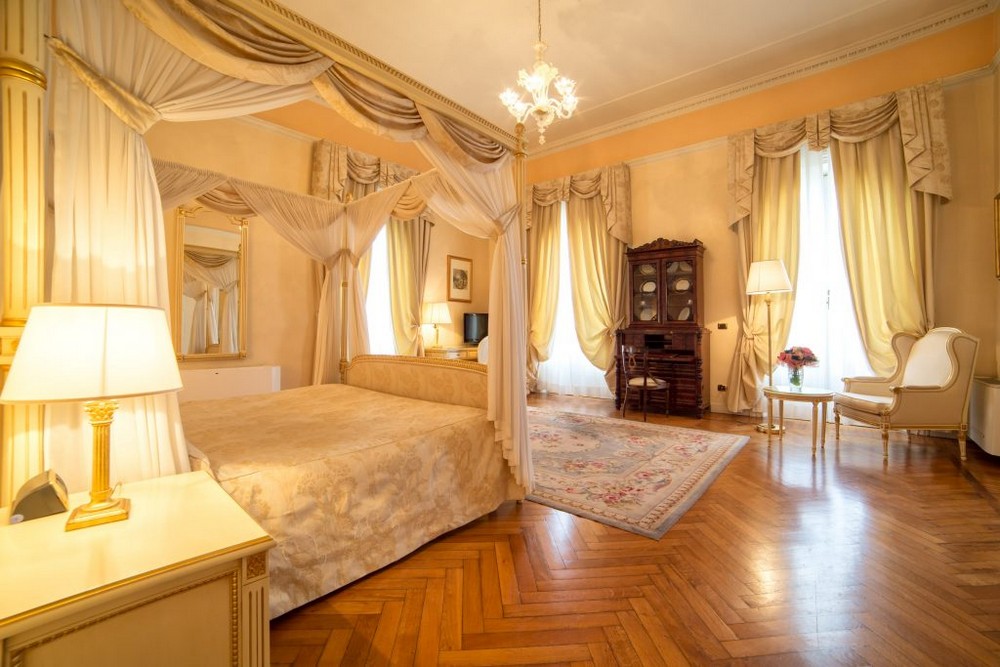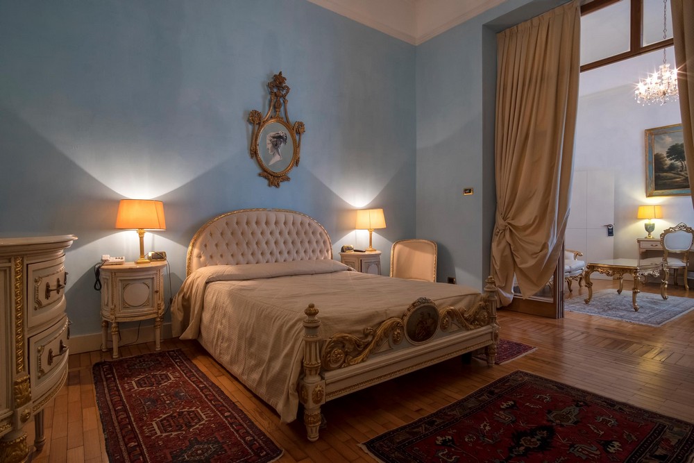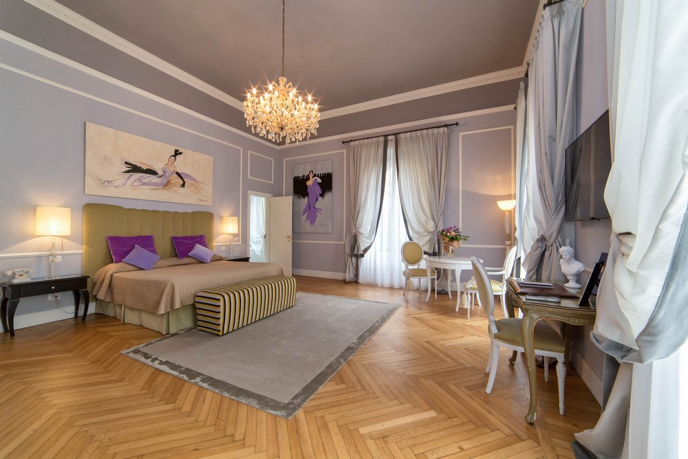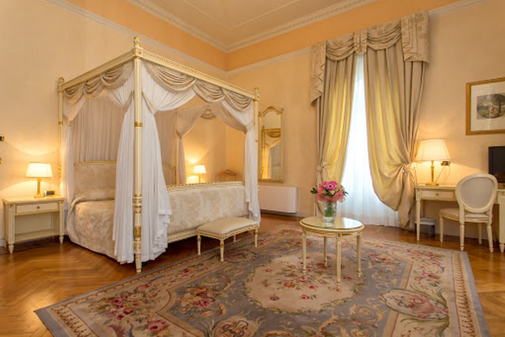 Suite Grace Kelly (примерно 32 м2, макс. 3 чел., номер в котором провели свой медовый месяц принц Монако и актриса Грейс Келли, гостиная и спальная зона, вид на термальный спа-салон или на холмы Монтекатини-Альто и город).