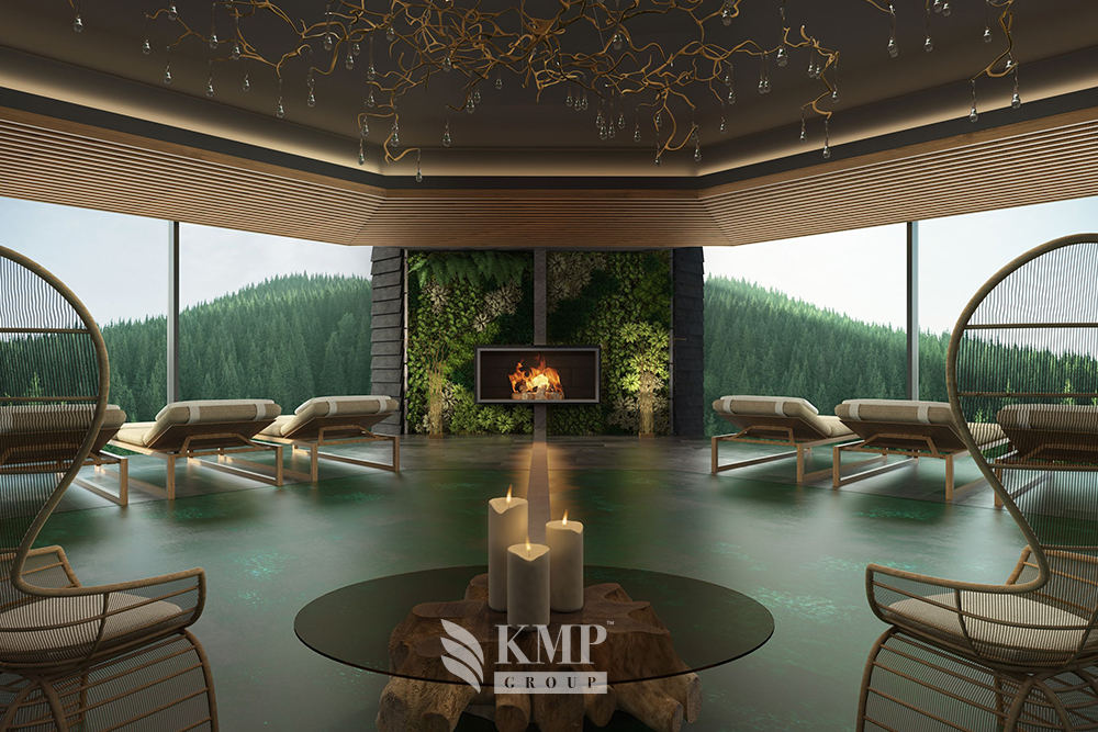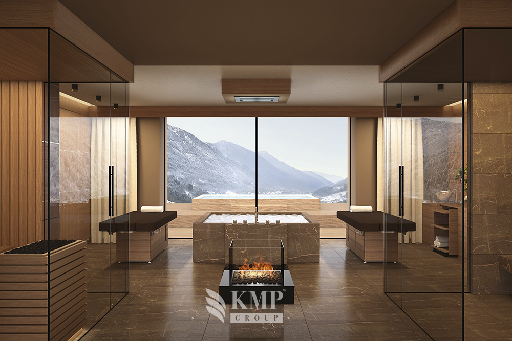 Спа и оздоровительный центр, бассейн, ресторан, бар, магазины на территории, библиотека.