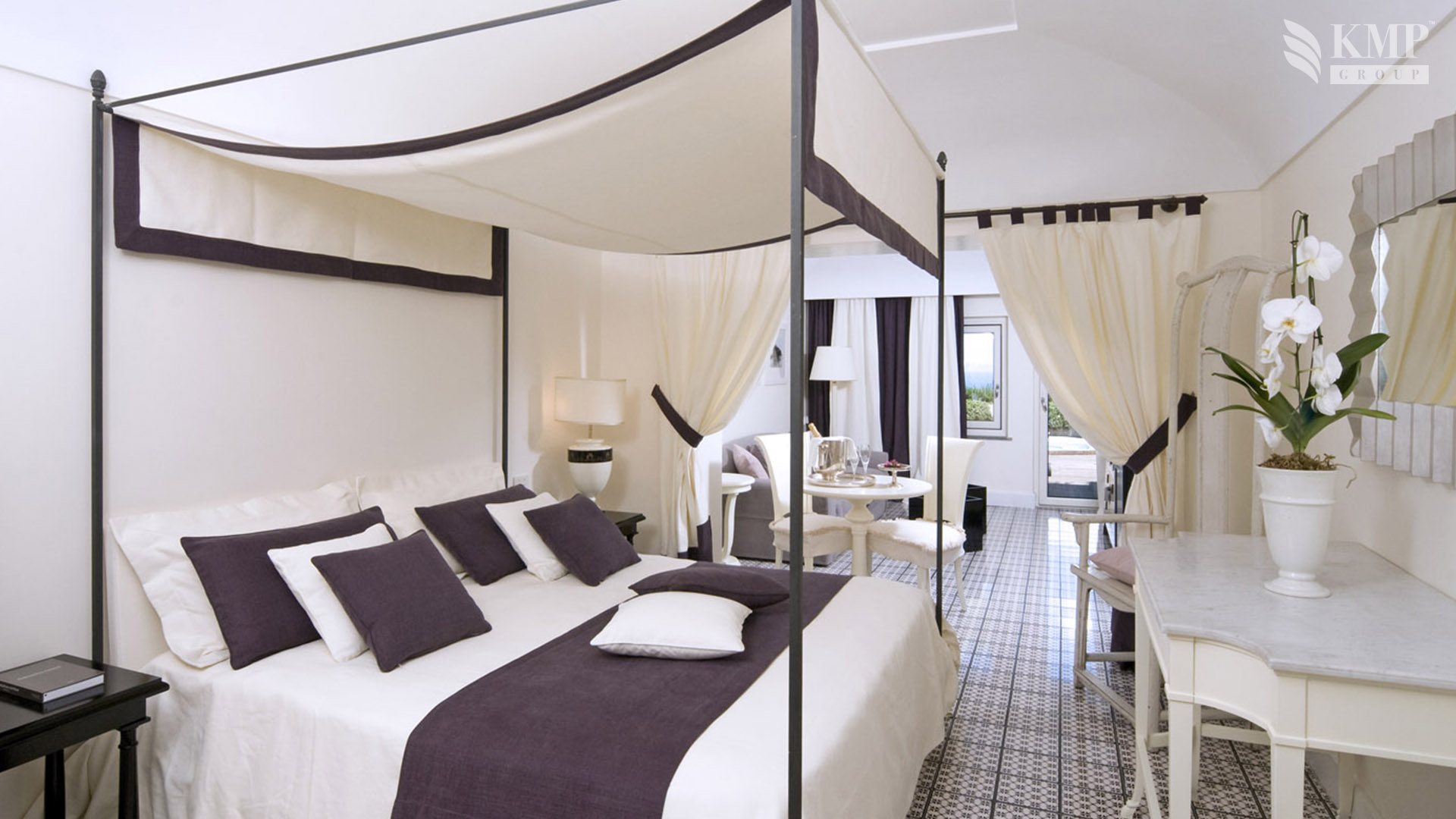 Classic suite (38 кв. м). Гостиная, спальня, ванная комната. Расположены в башне. Вид на море.