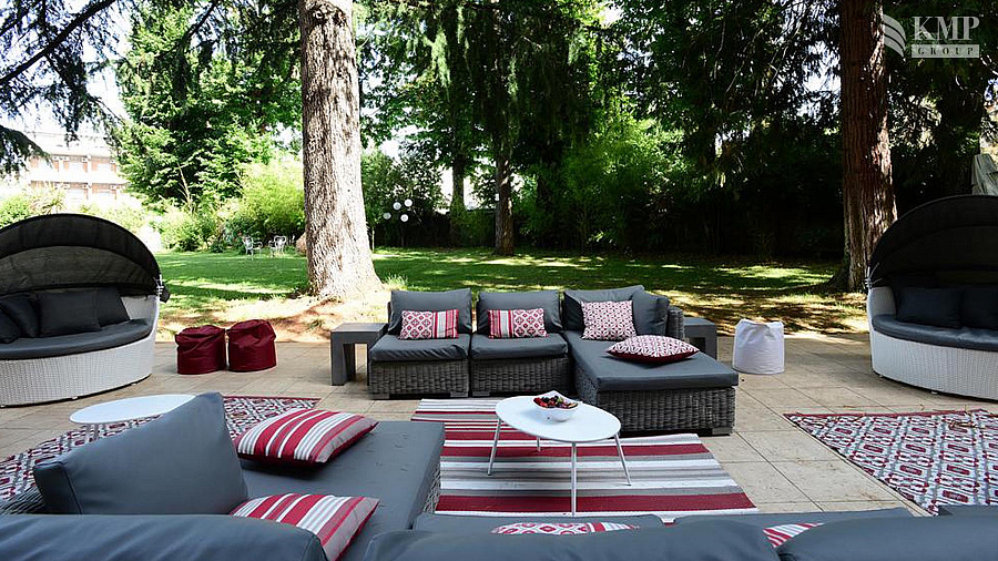• В парке отеля – открытый бассейн с подогревом 20x10 (открыт с апреля по конец октября), бесплатное пользование лежаками и полотенцами.