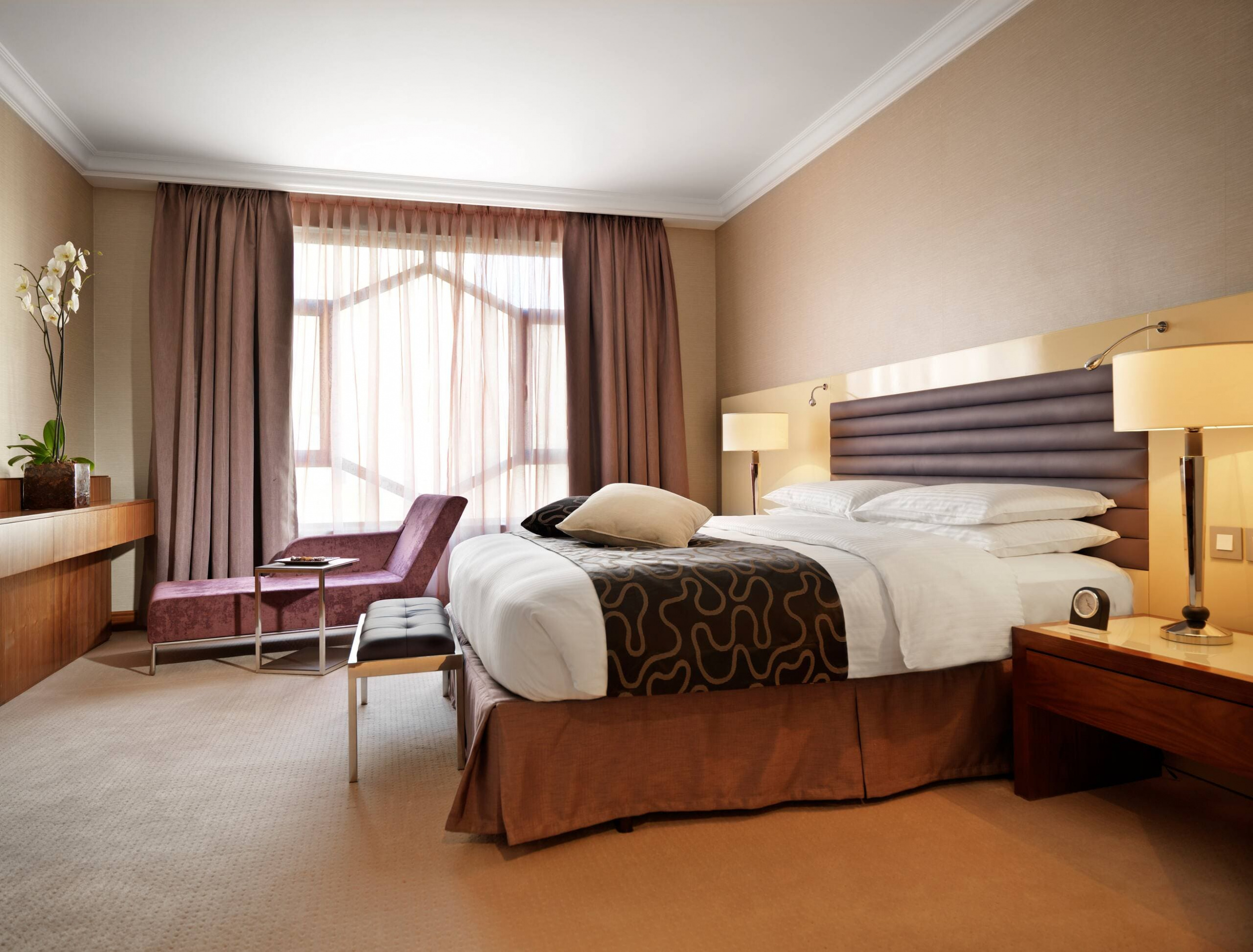 311 номеров, 3 ресторана, кафе, 3 бара, закрытый и открытый бассейны, тренажерный зал, сауна, парная, джакузи, массаж, грязевые обертывания, стоунтерапия, ароматерапия, процедуры для лица и тела), салон красоты, 10 конференц-залов (до 300 человек), банкетный зал (до 1200 человек), бизнес-центр, WI-FI доступ в Интернет, услуги няни, услуги консьержа, парковка.