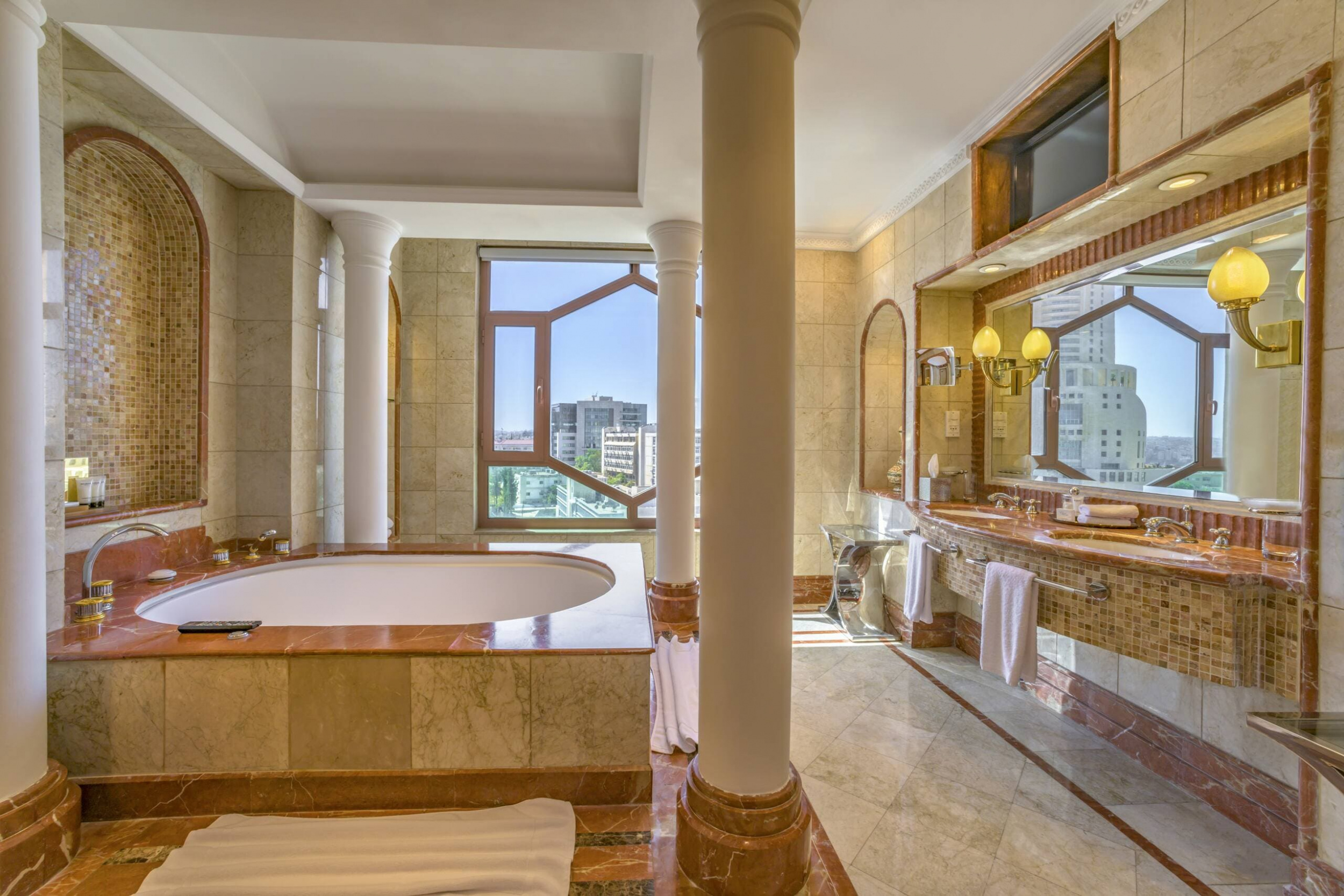 Роскошный Grand Hyatt Amman расположен в самом центре делового Аммана. Великолепные номера оформлены в современном стиле. Из окон открываются виды на Старый город, мечеть и бассейн. Для тех, кто предпочитает отдых класса VIP, предусмотрены специальные клубные номера. Гости этих номеров пользуются особыми привилегиями. В частности, в клубном лаундже для них сервируется ежедневный завтрак и вечерний коктейль. Grand Hyatt Amman располагает собственным SPA-центром. Это идеальное место для укрепления здоровья и поднятия жизненного тонуса. К вашим услугам широкий выбор процедур для лица и тела. И еще… Grand Hyatt Amman пользуется высоким спросом у деловых людей. В отеле созданы все условия для проведения бизнес-встреч и масштабных форумов разного уровня.