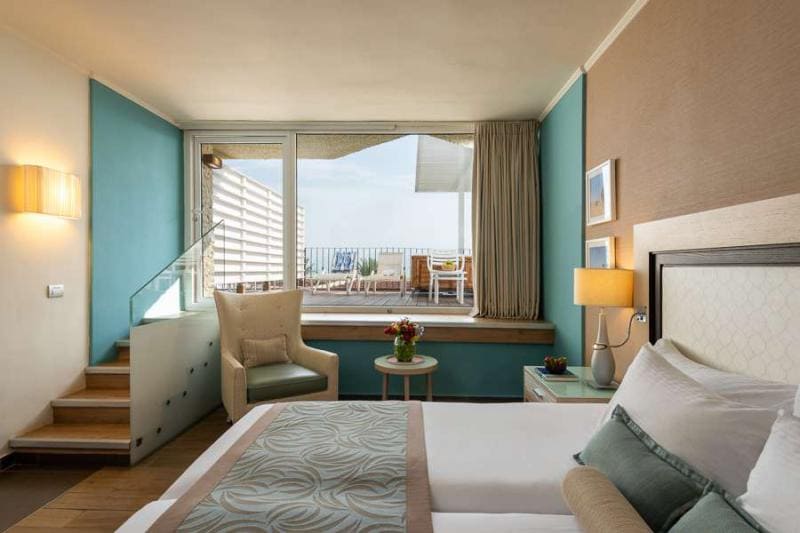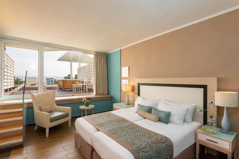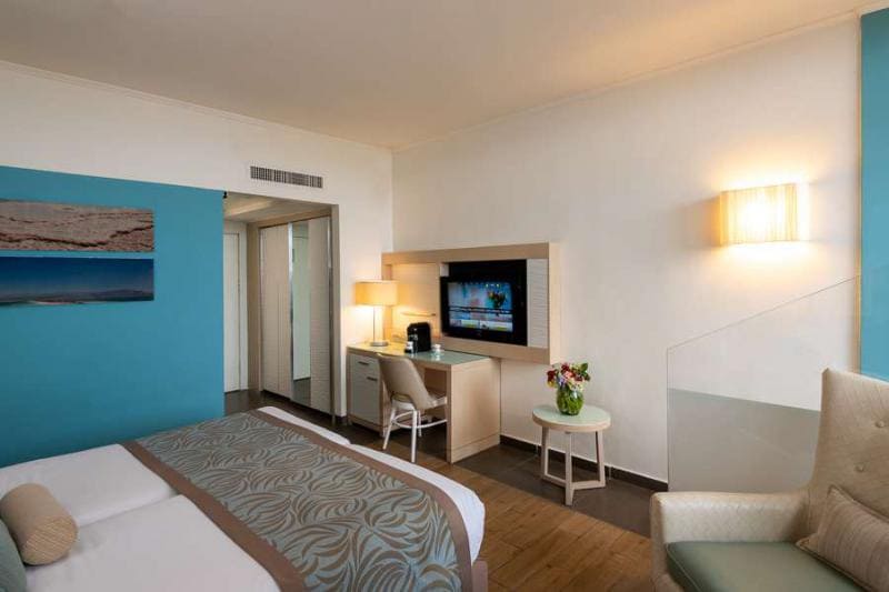 Отель расположен на собственном пляже Мёртвого моря, напротив гор Эдома.