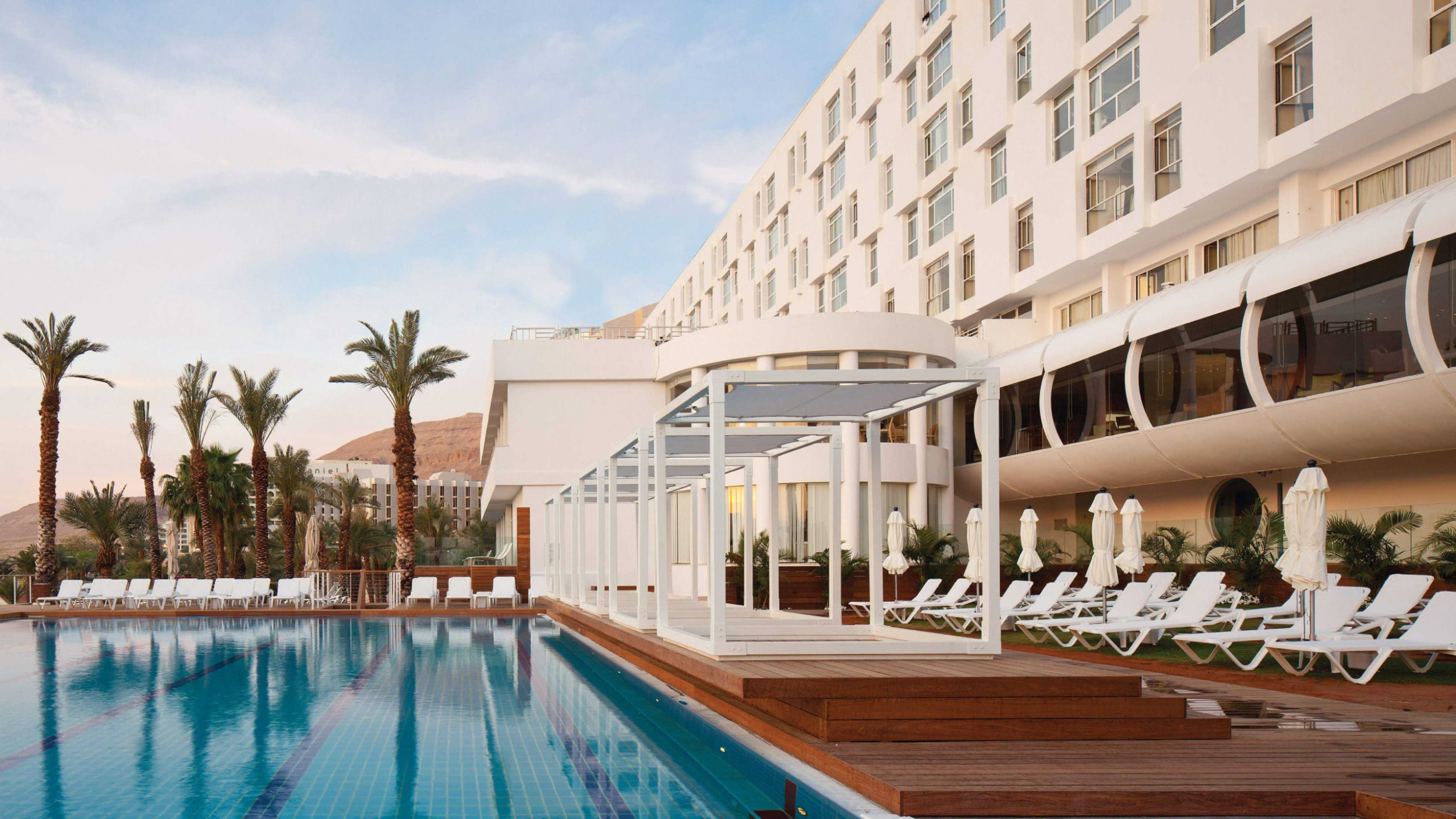 Dead Sea & Pool View Room (21 кв. м). Спальня с двуспальной кроватью, ванная комната с душевой. Вид на бассейн или Мертвое море.