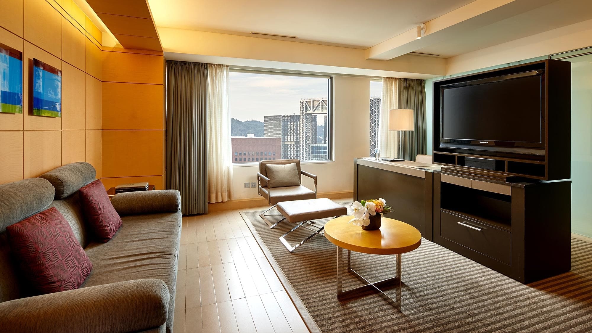 Junior suite (54-64 кв. м). Прихожая, гостиная или гостиная зона, спальня с двуспальной или двумя отдельными кроватями, ванная комната. В некоторых номерах: DVD-плеер. Расположены в главном здании и новом крыле. Вид на Сеул.