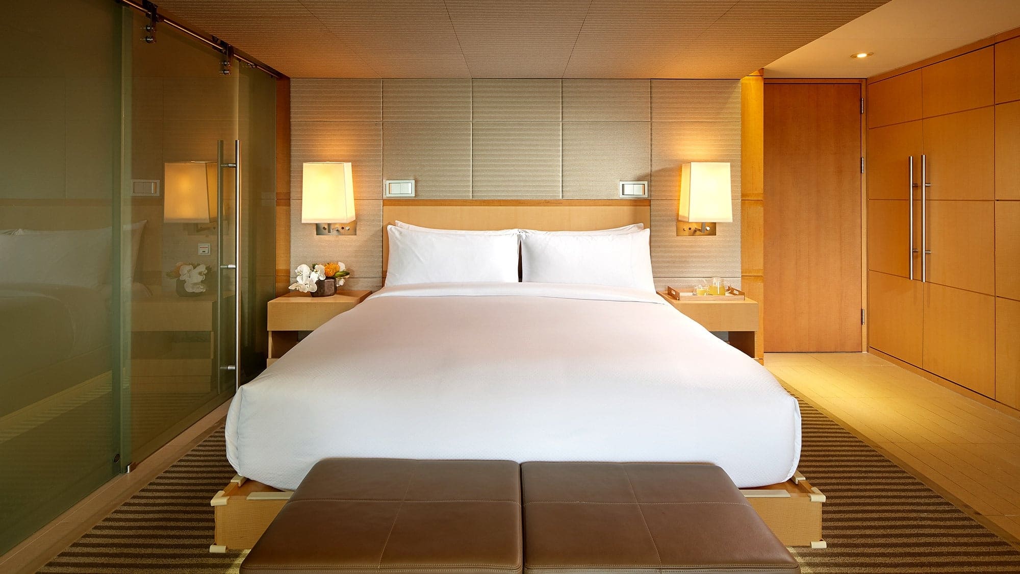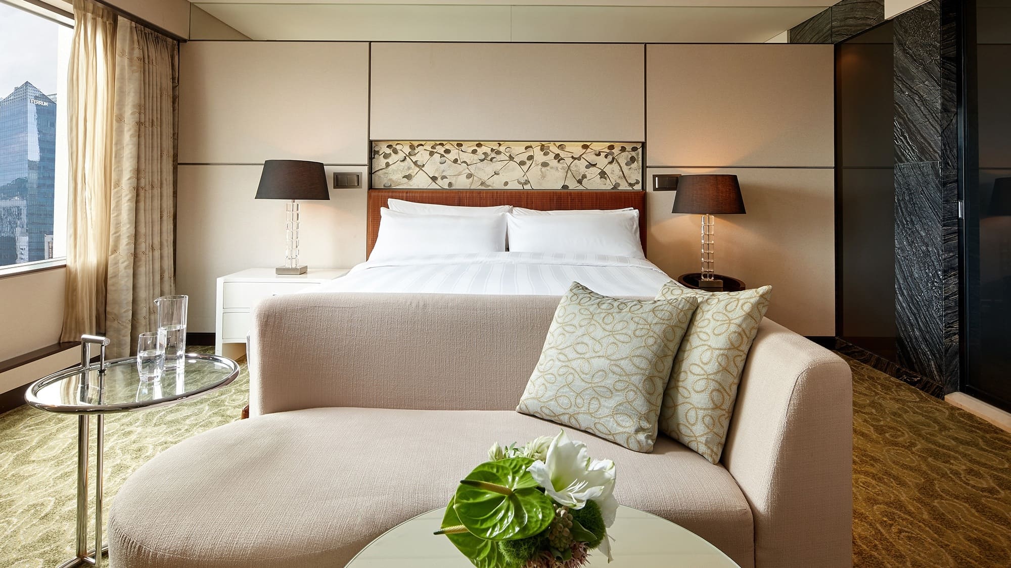 Presidential suite (141 кв. м). Спальня с гостиной и обеденной зонами (двуспальная кровать, стол на 8 персон), ванная комната с ванной и душевой кабиной, гостевой туалет. Дополнительно: кофемашина Nespresso. Расположены в новом крыле. Вид на Сеул.