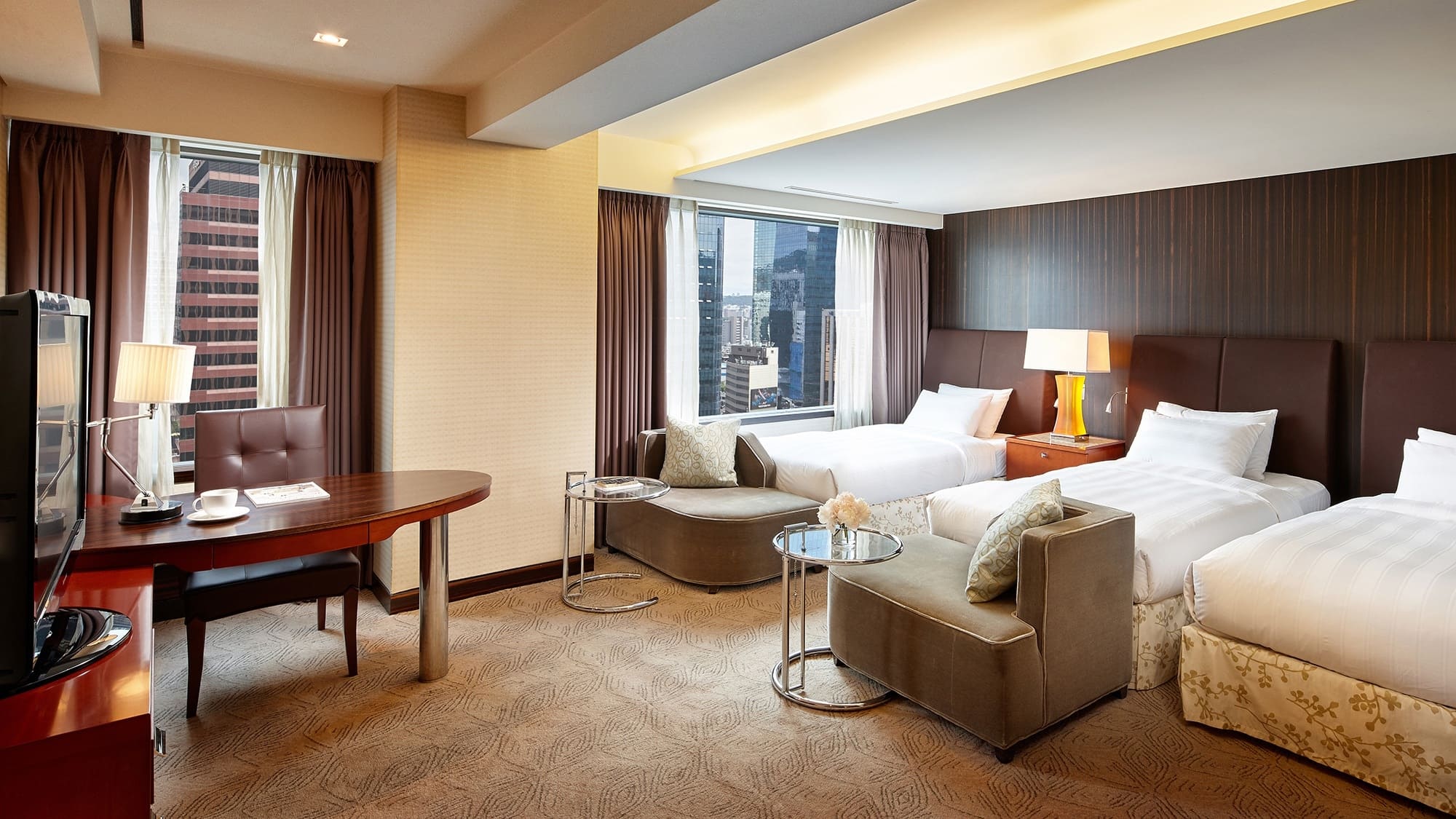 Deluxe room ladies floor (42 кв. м). Спальня с двуспальной или двумя отдельными кроватями, ванная комната с ванной и душевой кабиной. Расположены на 22 этаже в главном здании. Вид на Сеул. Размещение только для дам.