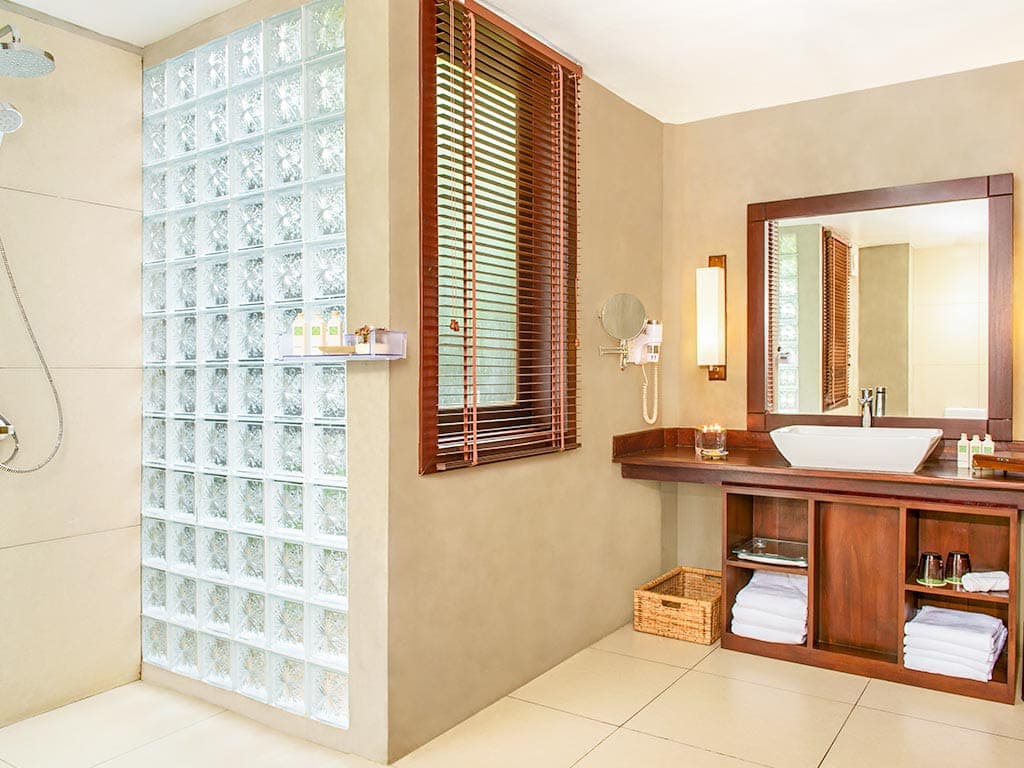 Beach cabin (50 кв. м). Терраса, спальня с кроватью king-size, ванная комната с душем с функцией «тропический дождь», душ с функцией «тропический дождь» на открытом воздухе. Расположены рядом с пляжем. Вид на океан. Прямой выход на пляж.