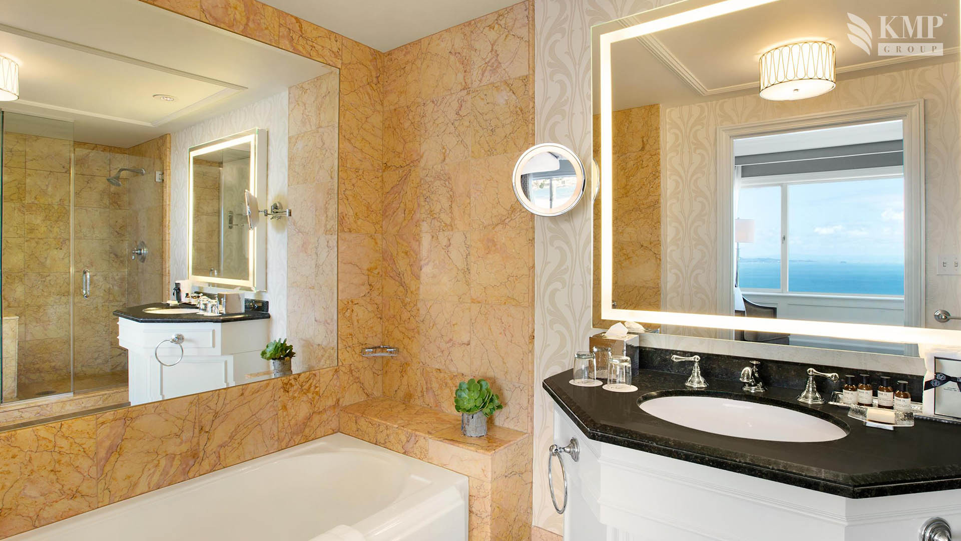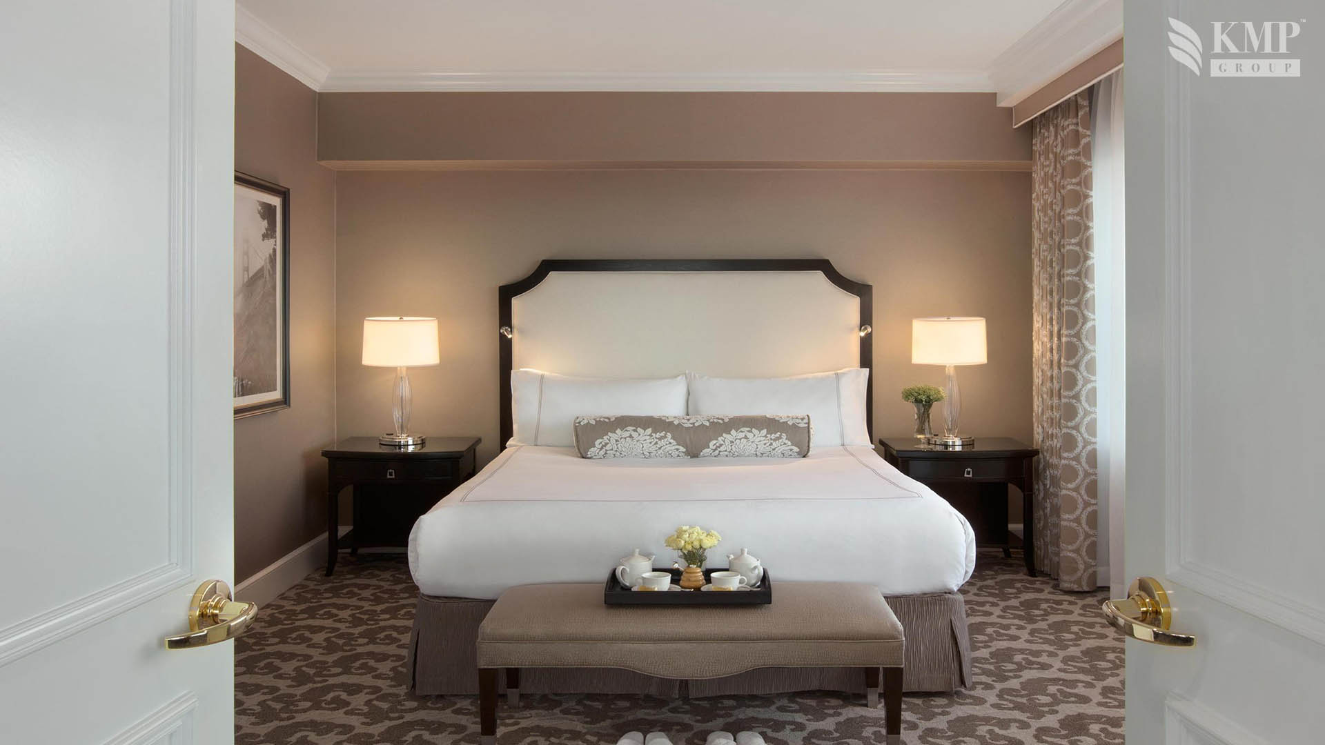 Diplomat Suite (104 кв.м): спальня с кроватью king-size, гостиная зона с барной стойкой, современной стереосистемой и телевизором с плазменной панелью в развлекательной зоне, мраморная ванная комната с ванной и душевой кабиной, гостевой туалет, окна с панорамным видом на город, на бухту Сан-Франциско и знаменитый мост «Золотые ворота». Номер выполнен в современном стиле и расположен на 22-ом этаже корпуса Tower Building.
