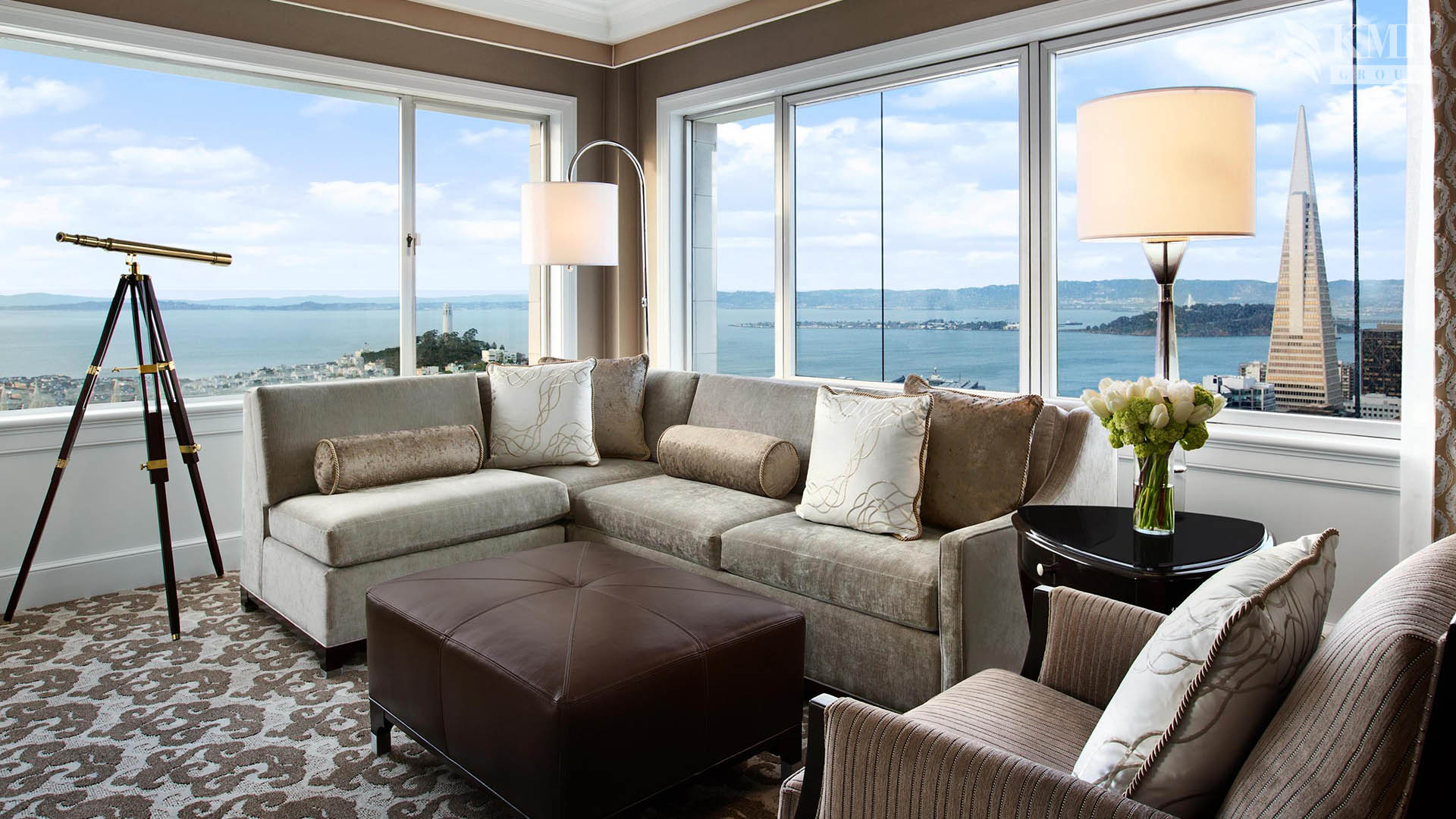 Tower Suite (59 кв.м): спальня с кроватью king-size, просторная гостиная, ванная комната, окна с видом на город и на бухту Сан-Франциско. Номера этой категории расположены в корпусе Tower Building, их интерьеры выполнены в современном стиле.
